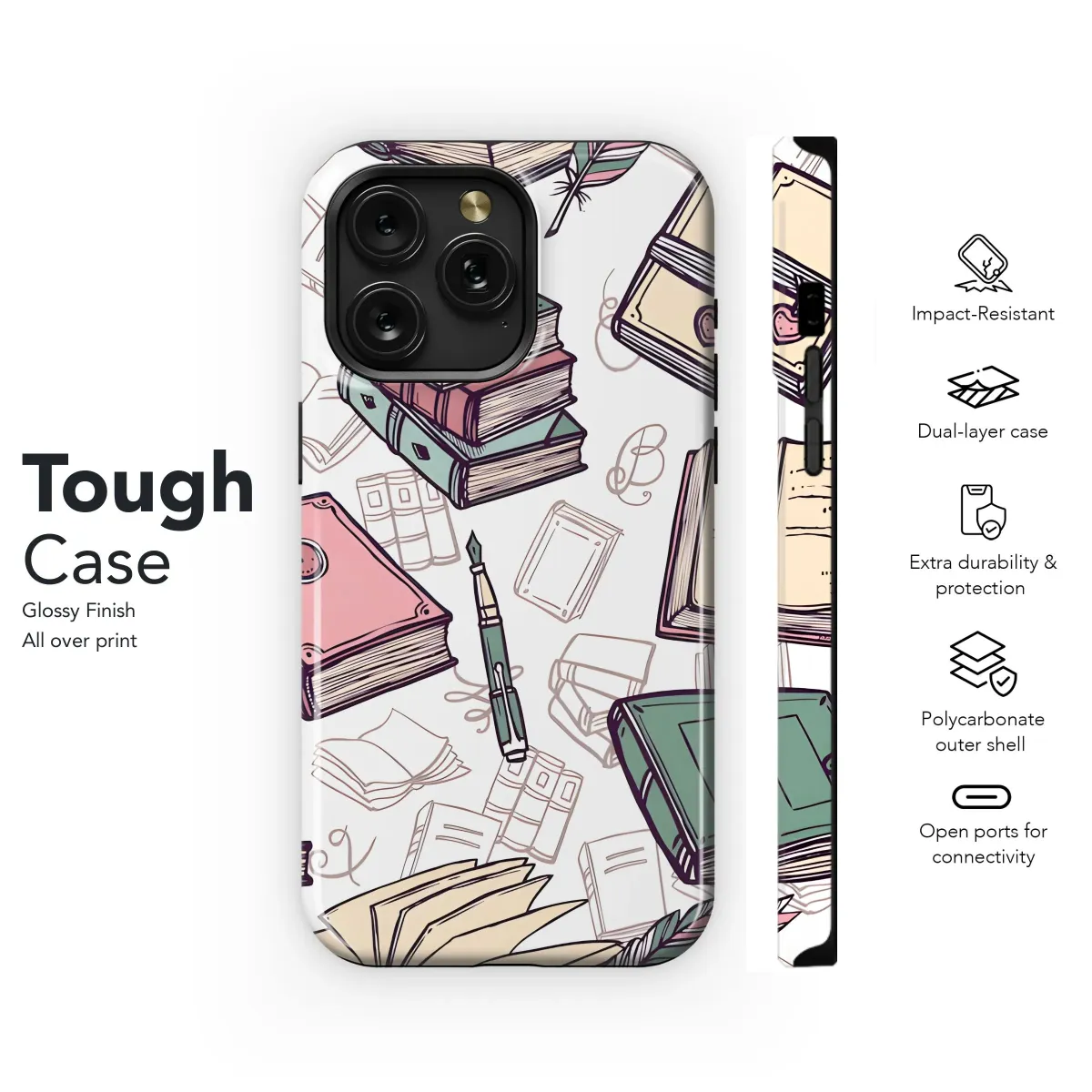 Discover the exquisite detail of this charming design, a hand-drawn pattern celebrating the timeless allure of books and the written word. This captivating artwork is a visual poem for literary souls, featuring carefully rendered stacks of vintage volumes in varied sizes and colors, some with elegant binding details, others open to display enchanting illustrations or pages ready for inscription. The design is enriched with classic writing implements, including a graceful fountain pen and a traditional quill, accompanied by artistic ink splatters and subtle calligraphic elements that weave through the composition. A sophisticated color scheme of antique greens, soft blush pinks, warm creams, and deep scholarly purples contributes to a feeling of cozy nostalgia and refined elegance, transporting you to a secret library or a peaceful reading nook. This pattern speaks directly to the heart of anyone who finds joy in turning pages, cherishes the smell of old books, or feels inspired by the power of stories. It's a perfect artistic representation for bibliophiles, aspiring authors, dedicated scholars, or beloved educators. With its unique vintage aesthetic and profound intellectual charm, this design serves as a beautiful tribute to the world of literature and learning. It offers a distinctive and thoughtful gift for any reading enthusiast, infusing their surroundings with a touch of artistic sophistication and a perpetual reminder of the adventures held within books.