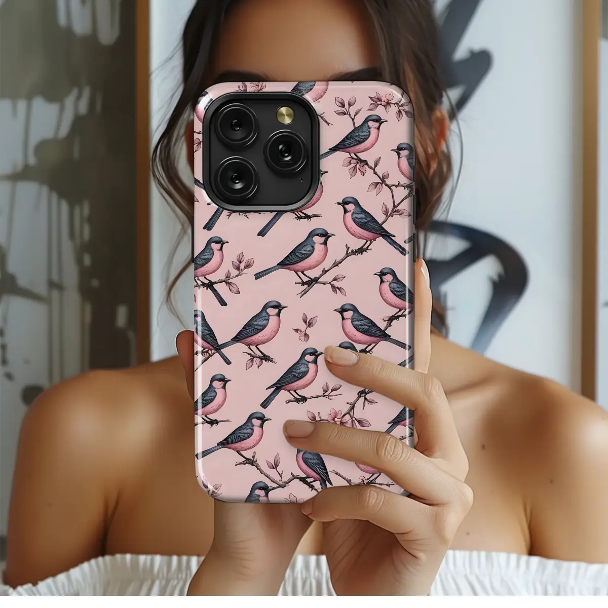 Immerse yourself in the serene elegance of a secret garden with this breathtaking vintage-inspired artwork. A flock of delicate songbirds, illustrated with exquisite detail, alight upon slender, blossoming branches, creating a continuous pattern of natural harmony and grace. The sophisticated color palette, a beautiful dance between soft blush pink and deep slate grey, lends a timeless and romantic feel to the entire composition. This design captures the enchanting spirit of classic botanical illustrations and elegant chinoiserie, perfect for anyone who cherishes cottagecore charm and nature-inspired beauty. Imagine carrying a piece of a peaceful spring morning with you, the intricate details of feathers and petals offering a new discovery with every glance. This artwork transforms your everyday essential into a unique statement piece, a whisper of whimsical artistry that elevates your personal style. It’s a celebration of quiet moments and the delicate poetry of the wild, blending classic toile style with a modern aesthetic. An absolutely perfect gift for bird enthusiasts, lovers of vintage florals, or anyone who appreciates handcrafted aesthetics, this design promises to bring a touch of bespoke elegance and gentle joy into their daily routine. Let this beautiful avian pattern be your personal emblem of nature's enduring charm, a constant reminder of quiet beauty in a busy world.