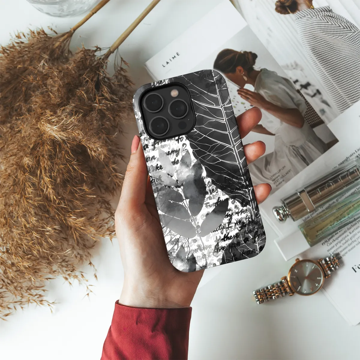 Embrace the charm of vintage with our exquisite Seamless Leaf Letter Pattern Phone Case. Its intricate design, featuring delicate leaves and stylish letters, will enhance the aesthetic appeal of your smartphone. Crafted with precision, this case seamlessly fits your iPhone, Samsung, or Pixel, providing reliable protection against scratches, bumps, and daily wear and tear. The sleek profile maintains the slim design of your device, while the precise cutouts ensure unobstructed access to ports and buttons. Elevate the style of your phone with this timeless and protective accessory.