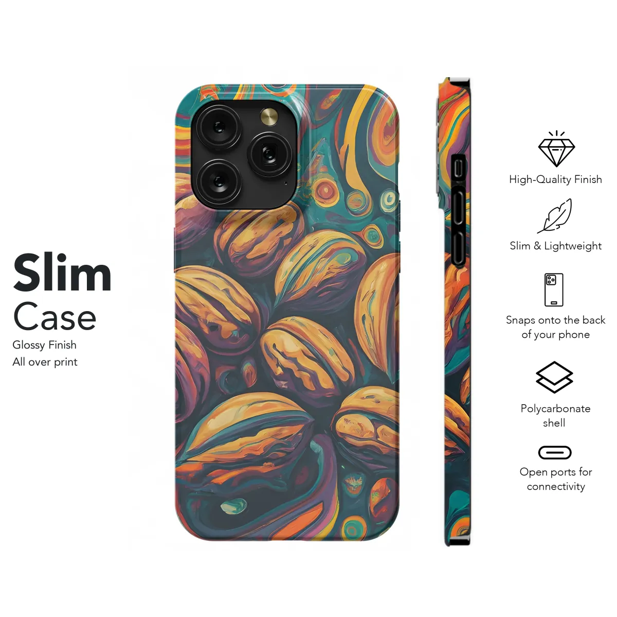 Showcase your unique style with this vibrant Walnut Kernels Multi Color Phone Case, compatible with iPhones, Samsung devices, and Pixel models. The eye-catching walnut kernel pattern adds an artistic touch to your device, making it a true fashion statement. Its durable construction ensures reliable protection against scratches and everyday wear, giving you peace of mind while you rock your phone in style.
