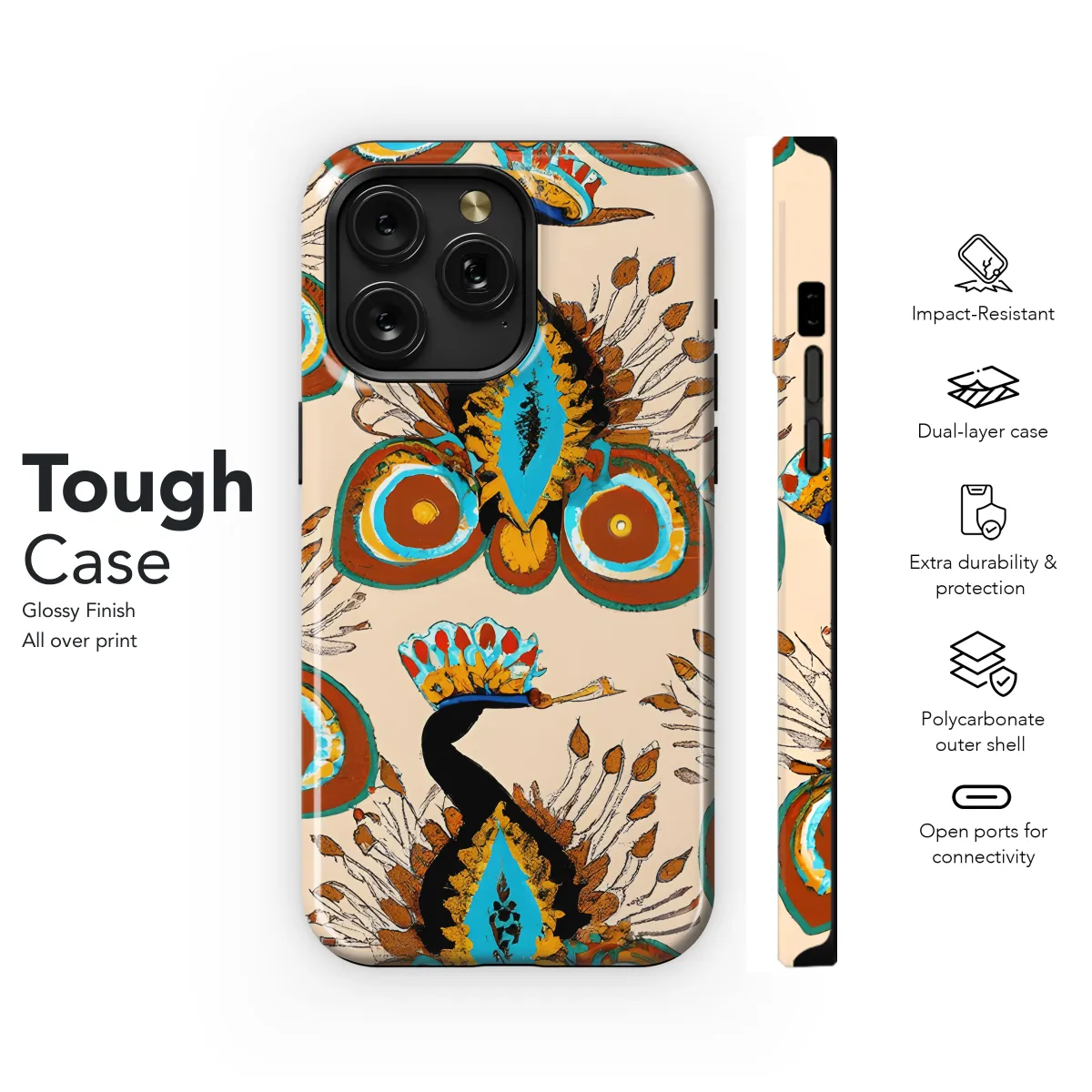 Adorn your smartphone with this captivating Warm Peacock Phone Case, designed for both iPhone and Samsung users. Its vibrant peacock feather pattern will elevate your style with its enchanting beauty. Crafted with precision, this case ensures a snug fit, safeguarding your device from scratches and impacts.