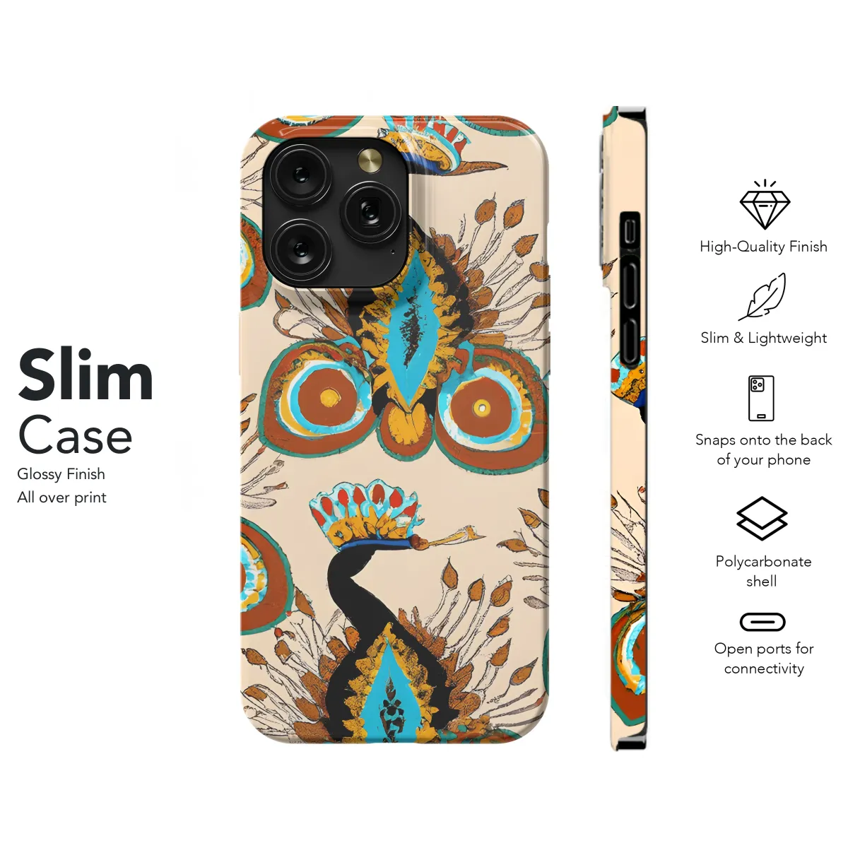 Adorn your smartphone with this captivating Warm Peacock Phone Case, designed for both iPhone and Samsung users. Its vibrant peacock feather pattern will elevate your style with its enchanting beauty. Crafted with precision, this case ensures a snug fit, safeguarding your device from scratches and impacts.