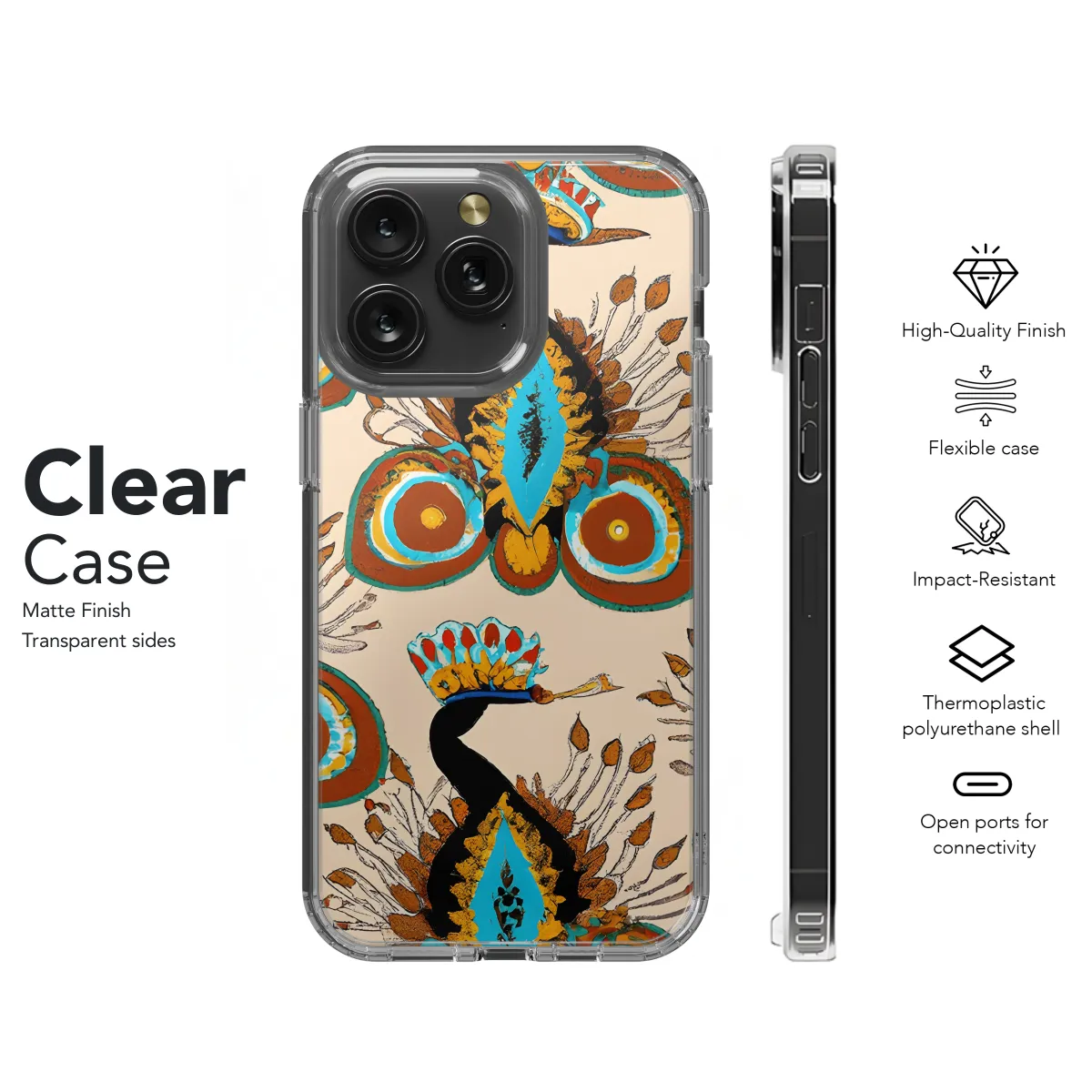 Adorn your smartphone with this captivating Warm Peacock Phone Case, designed for both iPhone and Samsung users. Its vibrant peacock feather pattern will elevate your style with its enchanting beauty. Crafted with precision, this case ensures a snug fit, safeguarding your device from scratches and impacts.