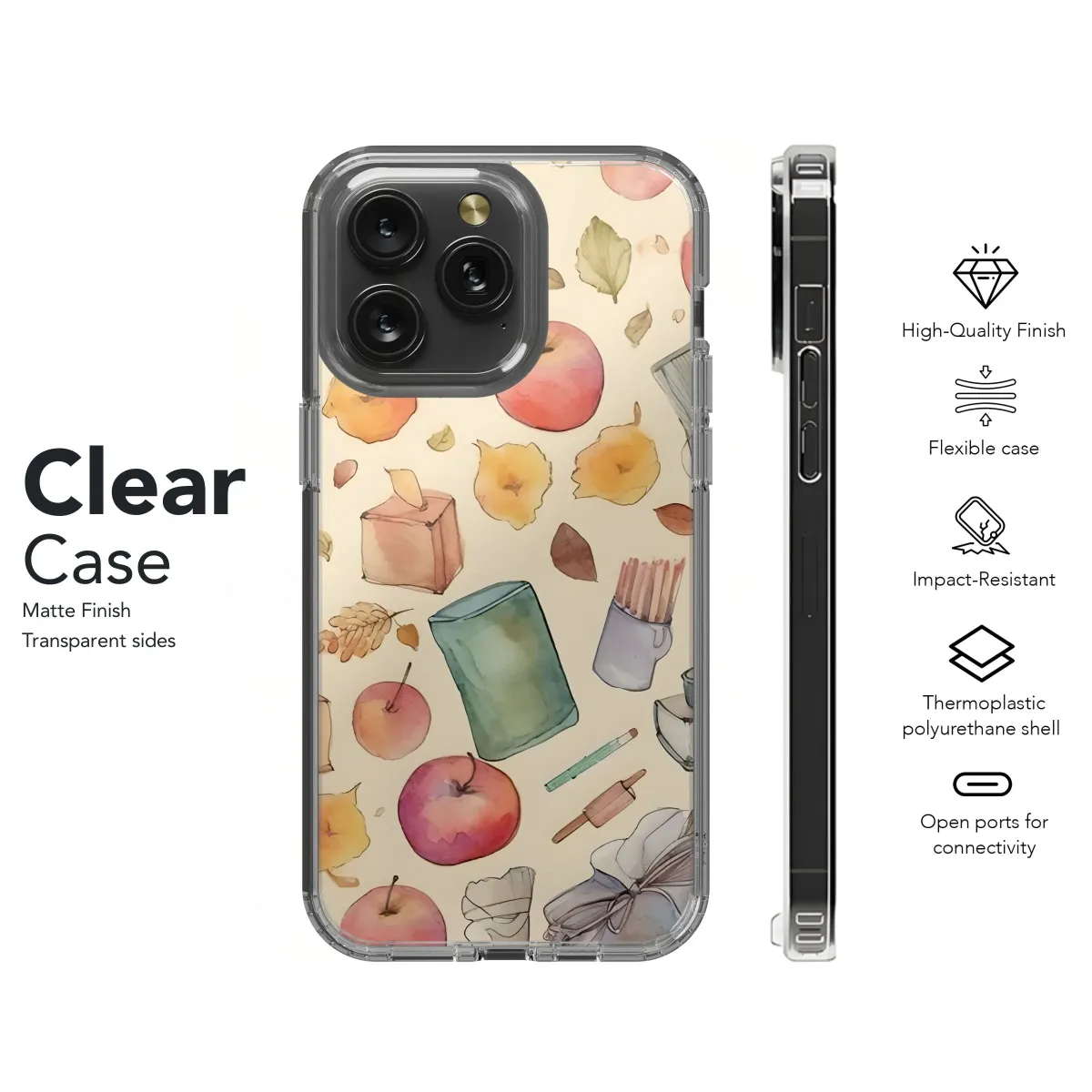 Embrace the cozy academic spirit with this delightful watercolor design, perfect for adding a touch of scholarly charm to your everyday tech. Featuring a whimsical pattern of autumnal apples, delicate fall leaves, vintage spectacles, and classic school supplies like books, erasers, pencils, and pencil holders, this design evokes a sense of nostalgia and intellectual curiosity. The soft, muted tones of ochre, russet, and sage create a warm and inviting aesthetic that complements any style. Ideal for students, teachers, librarians, or anyone who appreciates the beauty of learning, this charming artwork is a unique way to express your passion for knowledge and the cozy vibes of the back-to-school season. Give your device a touch of scholarly style. This design is great for Apple lovers, fall enthusiasts, or anyone who wants a unique, artsy look.