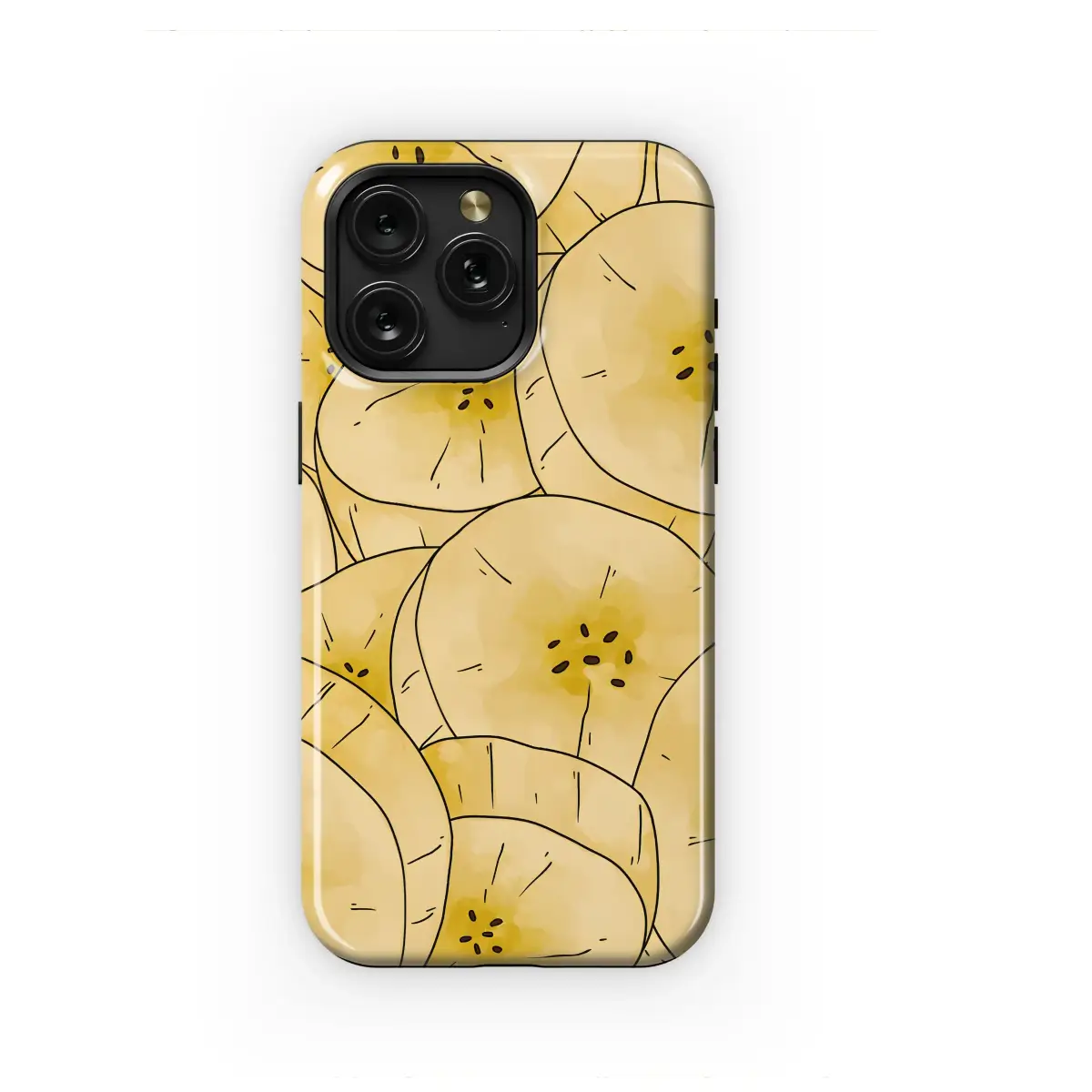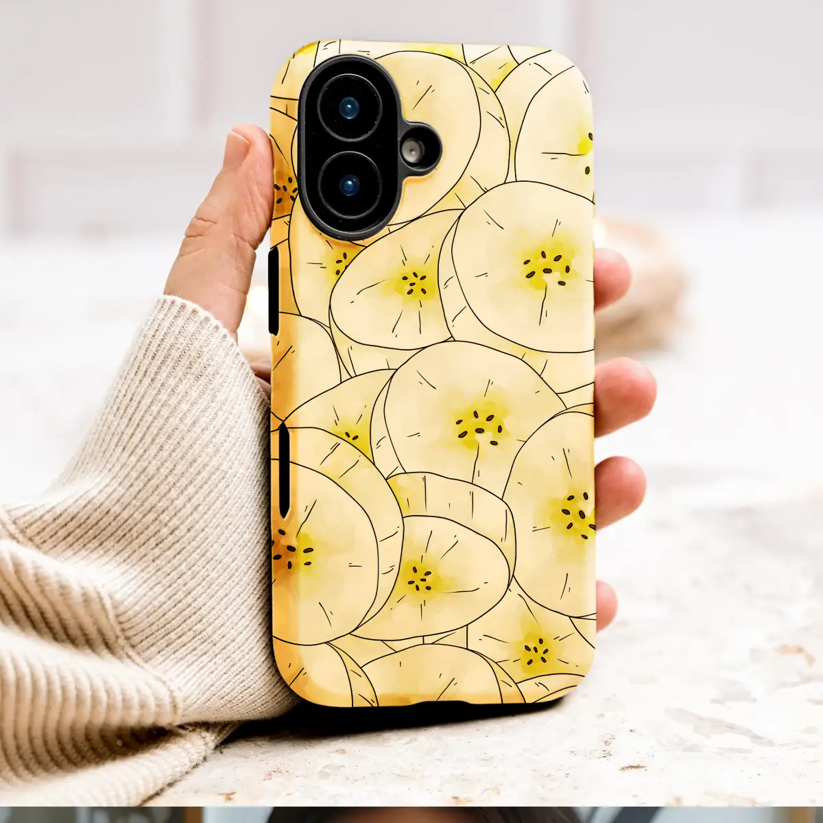 Add a touch of playful charm with this delightful banana slice design. Featuring a repeating pattern of illustrated fruit in a soft, watercolor style, this art brings a cheerful and vibrant energy. The bright yellow hues combined with subtle artistic outlines create a fun, foodie-inspired aesthetic perfect for brightening your day.
