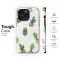 Embrace a touch of desert charm with this delightful cactus and succulent pattern. The design features a variety of potted cacti, each rendered in a soft watercolor style with intricate details. Set against a gentle pastel green background with subtle polka dots, this botanical illustration brings a fresh, boho vibe to your everyday.