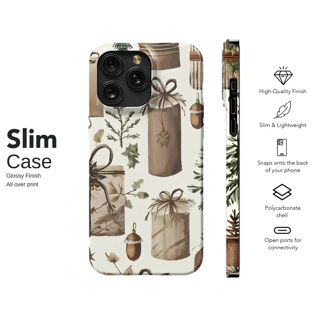 Embrace the holiday spirit with this charming watercolor Christmas pattern. This design features a cozy assortment of rustic, beautifully wrapped gifts, festive pine trees, and delicate winter botanicals like holly and pinecones. The warm, earthy color palette creates a sophisticated and natural holiday aesthetic, perfect for anyone who loves a cottagecore or woodland-inspired winter vibe.