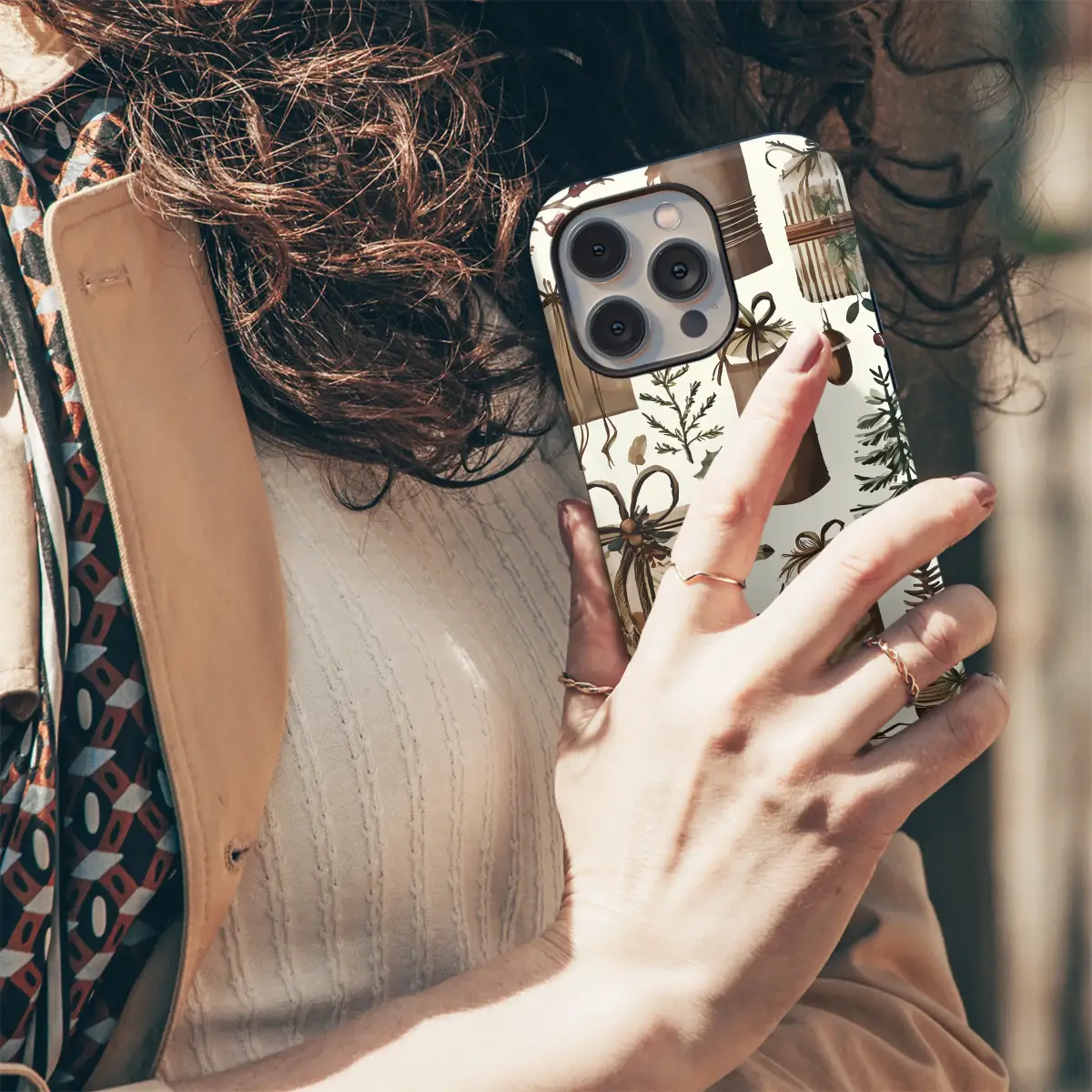 Embrace the holiday spirit with this charming watercolor Christmas pattern. This design features a cozy assortment of rustic, beautifully wrapped gifts, festive pine trees, and delicate winter botanicals like holly and pinecones. The warm, earthy color palette creates a sophisticated and natural holiday aesthetic, perfect for anyone who loves a cottagecore or woodland-inspired winter vibe.