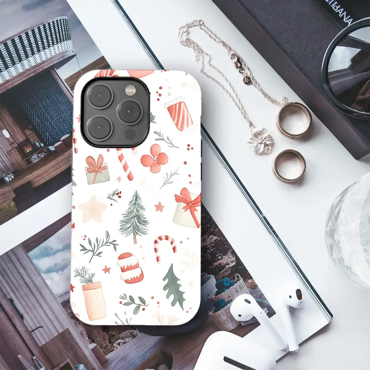 Embrace the holiday spirit with this charming watercolor Christmas phone case. Its festive pattern features classic yuletide illustrations like candy canes, pine trees, and gift boxes, perfect for adding a touch of winter cheer to your device. This protective and stylish cover showcases a whimsical, hand-painted aesthetic, making it a unique accessory for the holiday season. The high-quality printing captures the delicate details and soft colors of the original artwork. Key Features: • Durable polycarbonate outer shell • Flexible TPU inner liner for shock absorption • High-quality UV printing with a glossy finish • Protects from scratches, dust, and daily wear • Clear, open ports for connectivity • Compatible with wireless charging This case is a wonderful stocking stuffer or holiday gift for friends, family, or anyone who loves a cozy, festive vibe. Available for most popular iPhone, Samsung Galaxy, and Google Pixel models.