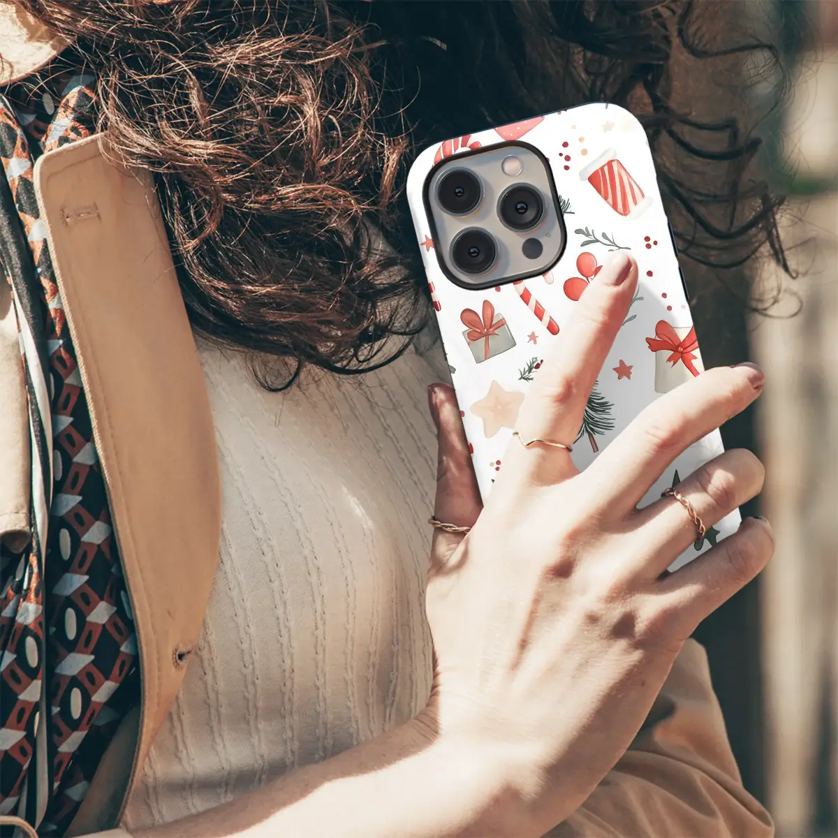 Embrace the holiday spirit with this charming watercolor Christmas phone case. Its festive pattern features classic yuletide illustrations like candy canes, pine trees, and gift boxes, perfect for adding a touch of winter cheer to your device. This protective and stylish cover showcases a whimsical, hand-painted aesthetic, making it a unique accessory for the holiday season. The high-quality printing captures the delicate details and soft colors of the original artwork. Key Features: • Durable polycarbonate outer shell • Flexible TPU inner liner for shock absorption • High-quality UV printing with a glossy finish • Protects from scratches, dust, and daily wear • Clear, open ports for connectivity • Compatible with wireless charging This case is a wonderful stocking stuffer or holiday gift for friends, family, or anyone who loves a cozy, festive vibe. Available for most popular iPhone, Samsung Galaxy, and Google Pixel models.