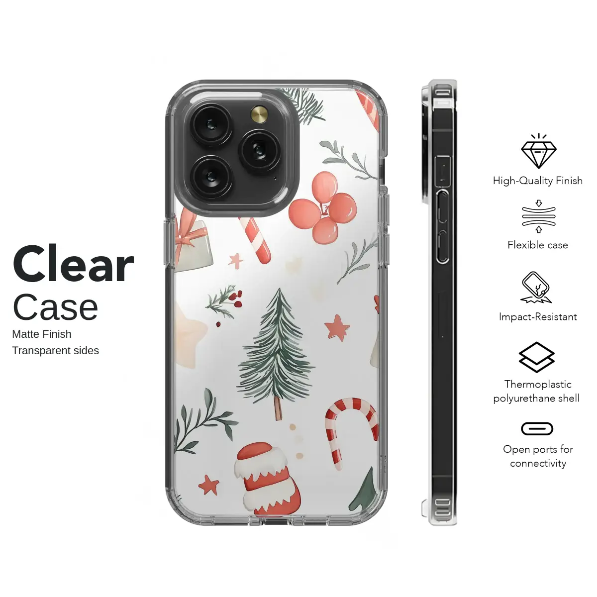 Embrace the holiday spirit with this charming watercolor Christmas phone case. Its festive pattern features classic yuletide illustrations like candy canes, pine trees, and gift boxes, perfect for adding a touch of winter cheer to your device. This protective and stylish cover showcases a whimsical, hand-painted aesthetic, making it a unique accessory for the holiday season. The high-quality printing captures the delicate details and soft colors of the original artwork. Key Features: • Durable polycarbonate outer shell • Flexible TPU inner liner for shock absorption • High-quality UV printing with a glossy finish • Protects from scratches, dust, and daily wear • Clear, open ports for connectivity • Compatible with wireless charging This case is a wonderful stocking stuffer or holiday gift for friends, family, or anyone who loves a cozy, festive vibe. Available for most popular iPhone, Samsung Galaxy, and Google Pixel models.