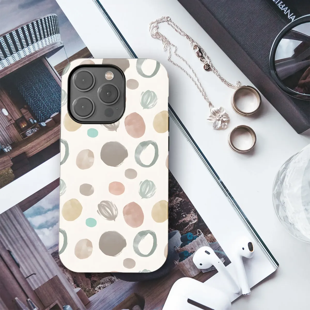 Elevate your everyday tech with this subtly chic abstract design. A playful yet sophisticated pattern of earthy watercolor circles, dots, and organic shapes in muted tones of taupe, sage green, blush pink, and golden yellow adorn this unique surface covering. Perfect for adding a touch of artistic flair to your device, this design offers a minimalist aesthetic with a hint of bohemian charm. The hand-painted feel of the watercolor elements provides a soft, organic texture that is both visually appealing and comforting. Ideal for those who appreciate art-inspired accessories and understated elegance. Accessorize with this cute, trendy, stylish, unique, watercolor abstract pattern. Let your personality shine with a touch of minimalist artwork.