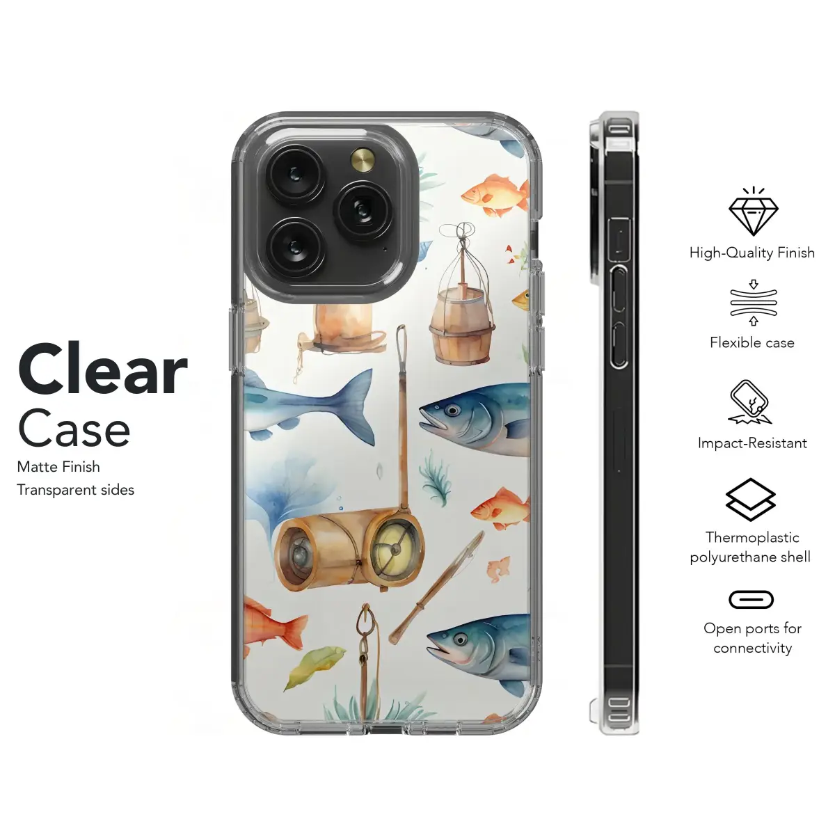 Dive into the depths of vintage charm with this captivating watercolor pattern, perfect for adding a touch of nostalgic artistry to your everyday carry! Featuring an array of beautifully rendered fish alongside antique diving equipment and wooden implements, this design evokes the spirit of classic nautical adventures. The cool blues of the fish contrast beautifully with the warm, aged tones of the barrels and diving gear, creating a balanced and eye-catching aesthetic. Ideal for the ocean lover, vintage enthusiast, or anyone seeking a unique and stylish accessory, this artwork is more than just a pretty picture. It's a conversation starter, a glimpse into a bygone era, and a testament to the beauty of hand-painted illustration. This design is perfect for statement accessories and makes a thoughtful gift for the angler, the diver, or anyone who appreciates the timeless allure of the sea. Bring the allure of the deep sea to your tech with this unique fish and diving equipment illustration; grab yours today!