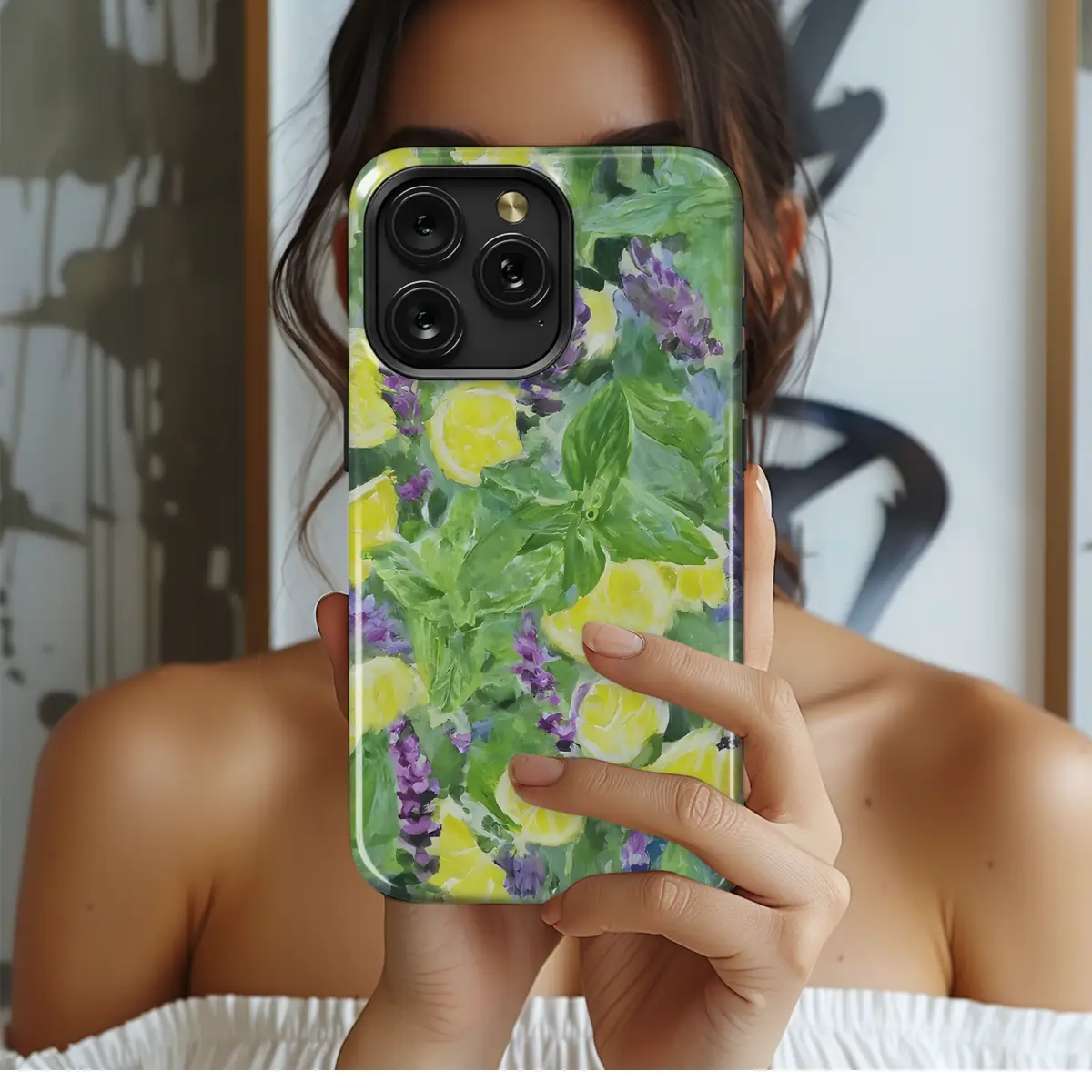 With a vibrant fusion of watercolor lemons, blooming lavender, and aromatic steam, this phone case is a sensory feast for your eyes. The delicate brushstrokes capture the essence of nature, bringing a touch of serenity to your everyday tech. The design is printed on a high-quality case that protects your phone from bumps, scratches, and everyday wear and tear. Whether you're sipping tea in a cozy cafe or wandering through a fragrant garden, this case will add a touch of botanical beauty to your digital adventures.