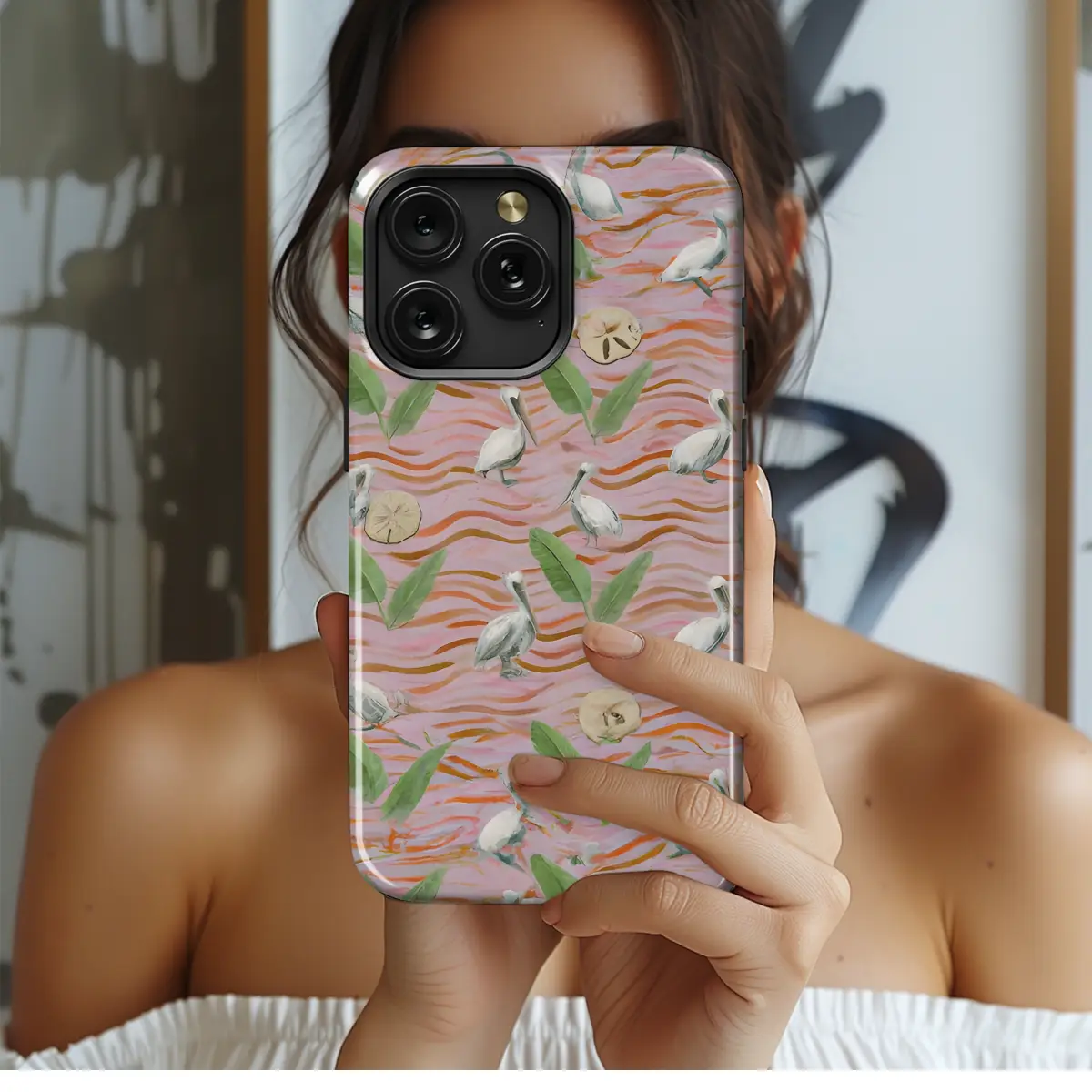 Protect your phone in style with our watercolor pastel pink wave pelicans phone case. The unique design features a vibrant watercolor print of playful pelicans riding waves, adding a touch of coastal charm to your device. Made from durable materials, this case provides excellent protection against scratches, bumps, and drops. Compatible with iPhone, Samsung, and Pixel models, it's the perfect accessory to keep your phone safe and looking its best.