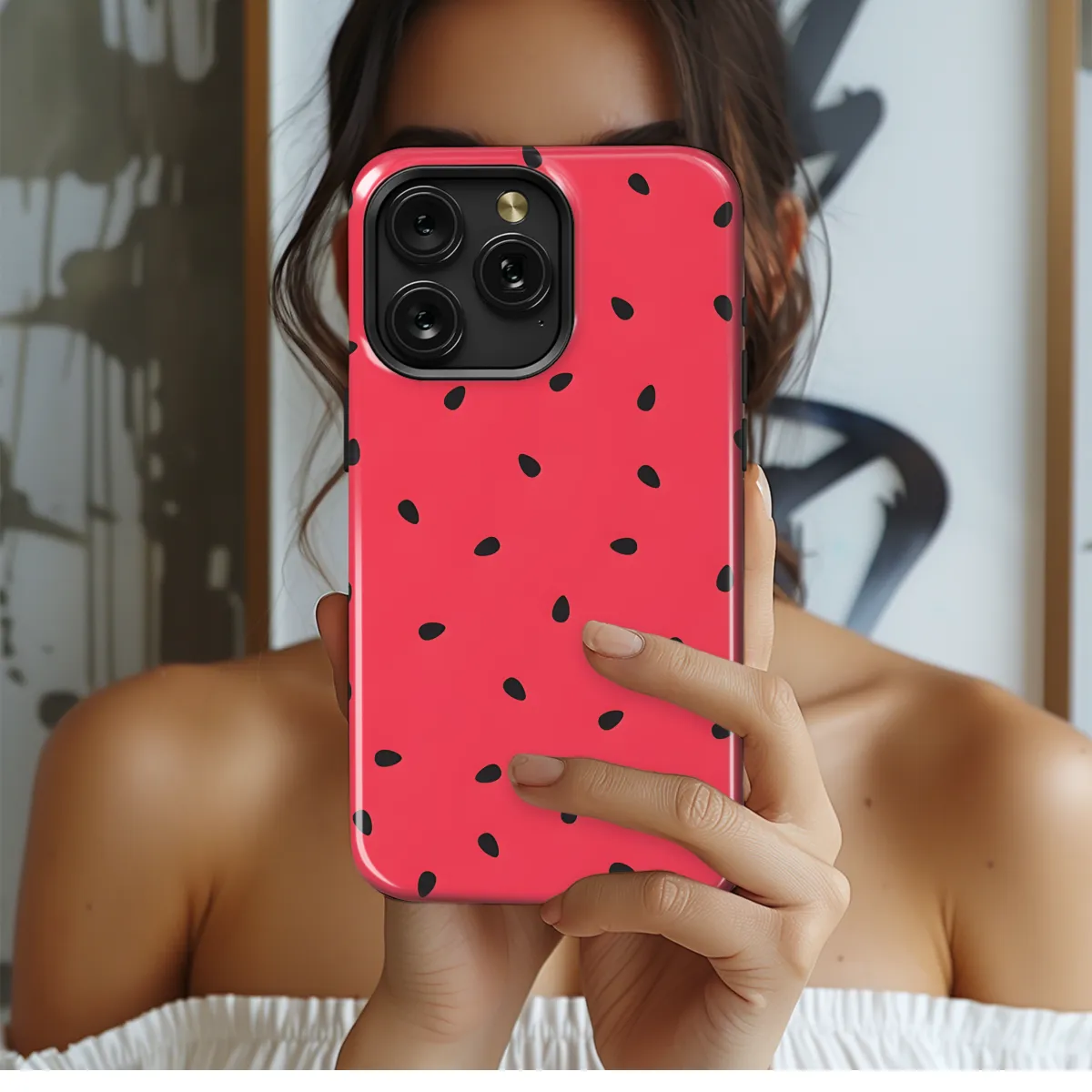 **Watermelon Seeds Phone Case** Protect your phone with this refreshing and stylish watermelon seeds phone case. With its vibrant colors and playful design, this case is sure to turn heads. The durable material provides excellent protection against bumps, scratches, and drops, while the slim profile ensures a comfortable grip. Available in a variety of colors and sizes to fit most iPhone, Samsung, and Pixel models.