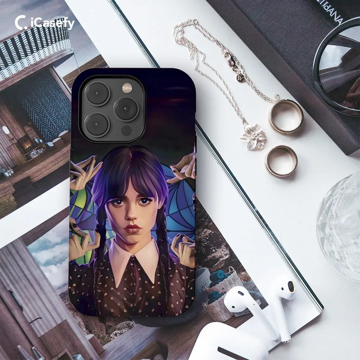 Introducing our Wednesday Addams Enid Ophelia Window phone case, inspired by the darkly whimsical world of Wednesday Addams. Featuring a design reminiscent of Enid's and Ophelia's enigmatic presence at the window, this case captures the essence of the mysterious and macabre. Embrace your inner gothic charm while protecting your device with this uniquely stylish case.