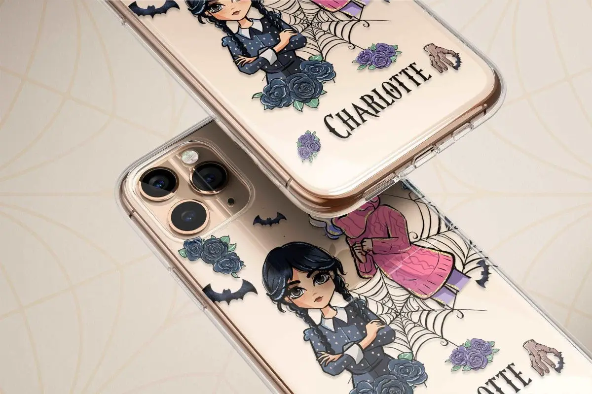 Fans of The Addams Family and Enid will adore this phone case. The design features Wednesday Addams and Enid in their iconic costumes, set against a backdrop inspired by the universe of the Addams Family. The case is made of transparent silicone TPU, which gives it a slim and lightweight design while also protecting your phone. It will not only protect your phone from scratches, but it will also make a fashion statement. With this one-of-a-kind phone case, you can flaunt your devotion to Wednesday and Enid wherever you go.