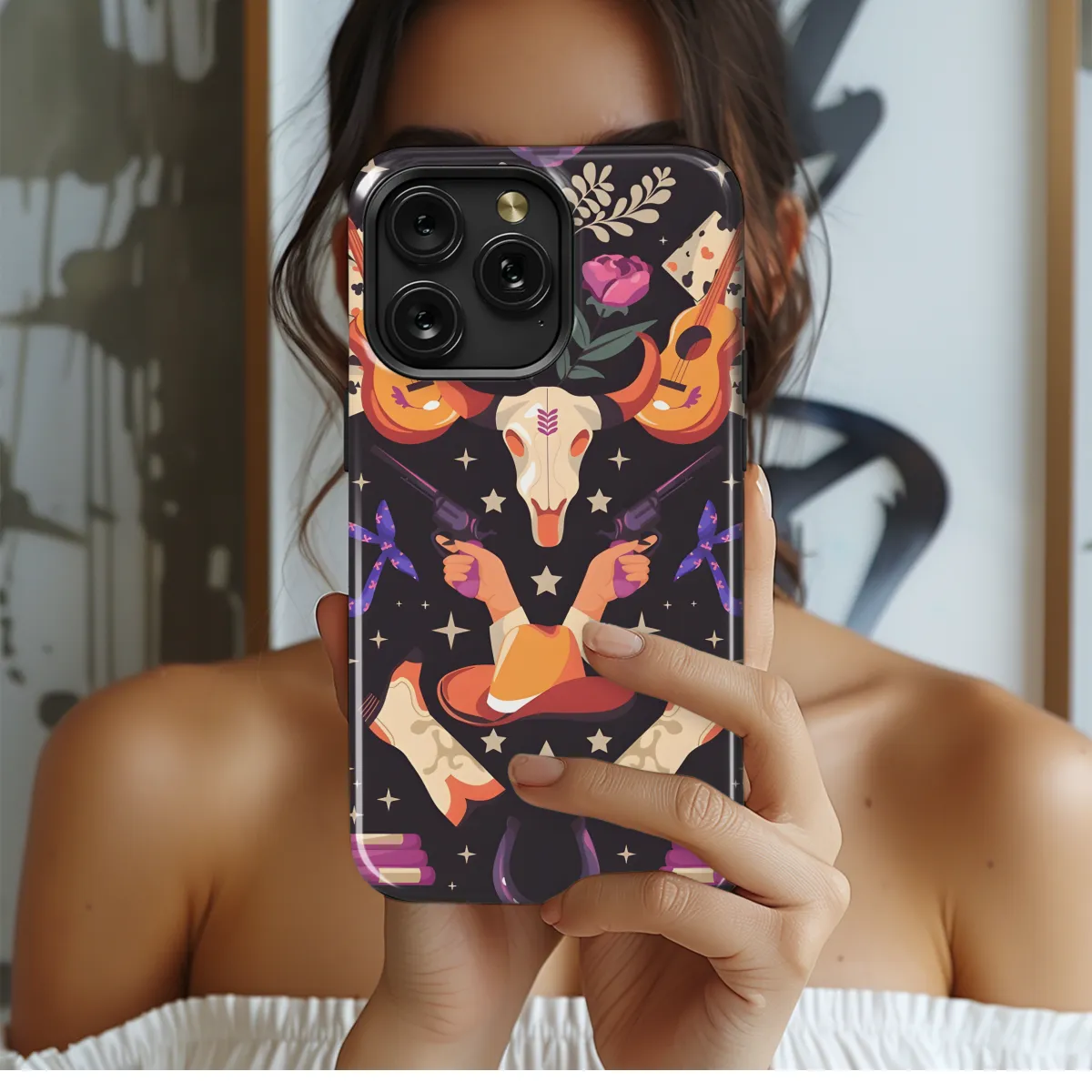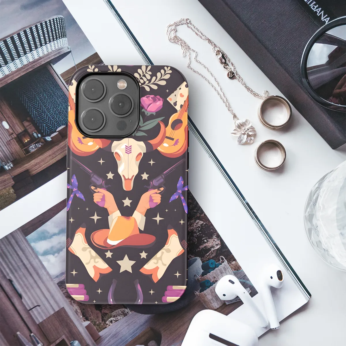 Step into the untamed wild with this Western Cowboy Phone Case! Crafted for your iPhone, Samsung, or Pixel, this protective shield boasts a rugged design that will keep your device safe from the perils of the digital frontier. The intricate cowboy-themed engravings will transport you to a time of lawlessness and adventure, while the durable materials ensure your phone remains unscathed in the face of any digital showdown. Unleash your inner cowboy with this stylish and functional phone case!