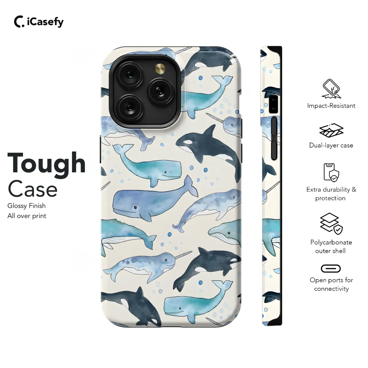 Dive into the depths of the ocean with our captivating Whales, Orcas & Narwhals Phone Case. This vibrant and eye-catching case features stunning images of these majestic marine creatures, capturing their elegance and grandeur. Available for a wide range of iPhone, Samsung, and Pixel models, this case will protect your device while adding a touch of aquatic charm to your everyday life.