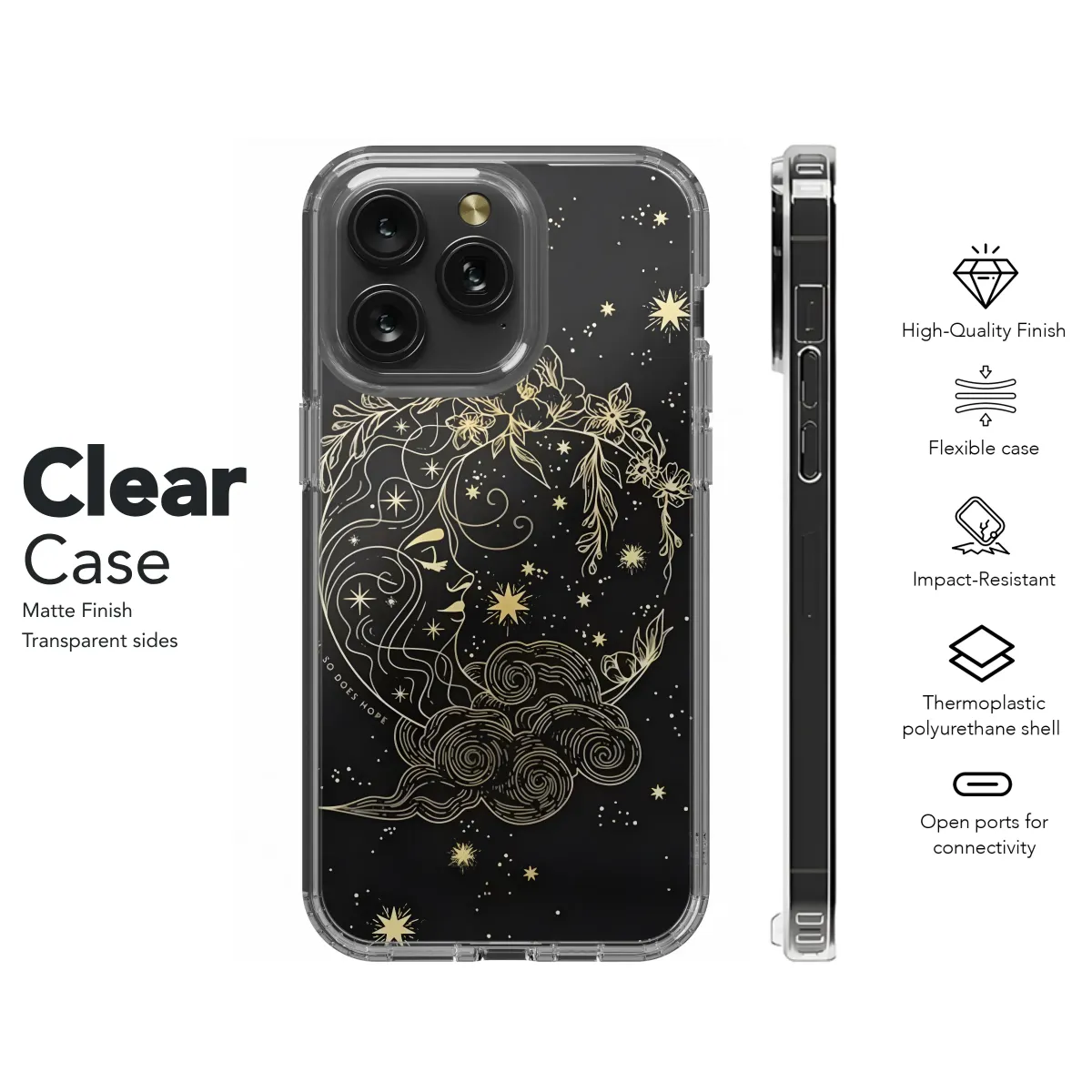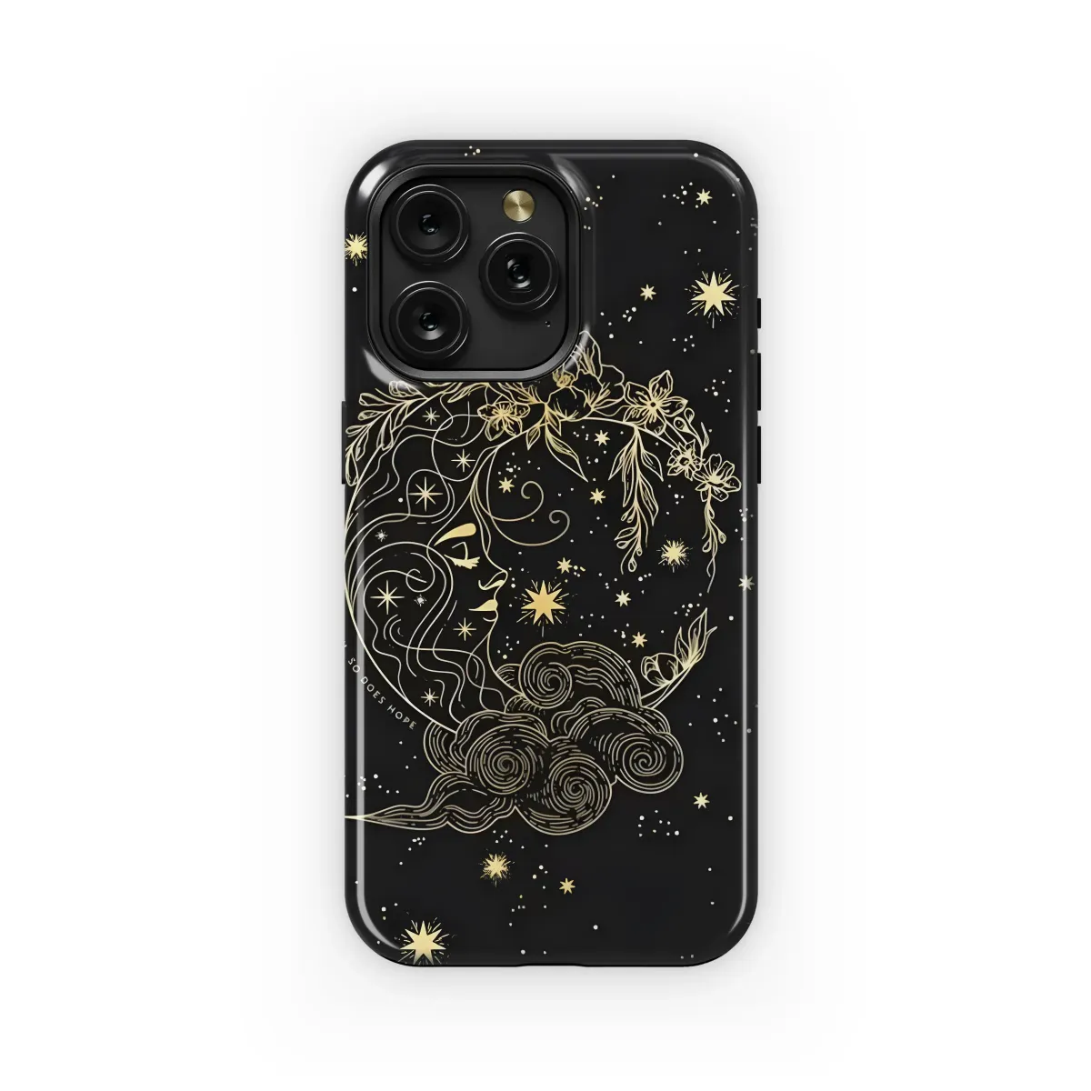 Embrace the magic of the cosmos and carry a universe of inspiration wherever you go. This stunning celestial design captures the serene beauty of the night sky, transforming your essential personal item into a unique piece of wearable art for the modern mystic and dreamer. At its heart is a breathtaking golden line art illustration of a crescent moon, artfully imagined as a divine goddess figure. Her tranquil profile, etched in shimmering gold, gazes out from a deep black canvas scattered with a galaxy of twinkling stars and cosmic dust. She is crowned with an intricate and delicate floral wreath, featuring blooming peonies and wildflowers that symbolize growth, beauty, and resilience. Following the elegant curve of her form is the gentle, uplifting mantra, "Where flowers bloom, so does hope," a powerful message for daily encouragement and optimism. This enchanting artwork masterfully blends a witchy, bohemian aesthetic with a touch of dark academia and celestial charm, making it a truly unique statement piece. It’s the perfect spiritual gift for an astrology lover, a thoughtful birthday present for a best friend who loves all things magical, or a personal talisman to inspire you. Let this ethereal moon goddess, surrounded by swirling clouds and celestial light, add a touch of magic, feminine energy, and profound beauty to your daily routine, turning a simple accessory into an extraordinary totem of hope and cosmic elegance.