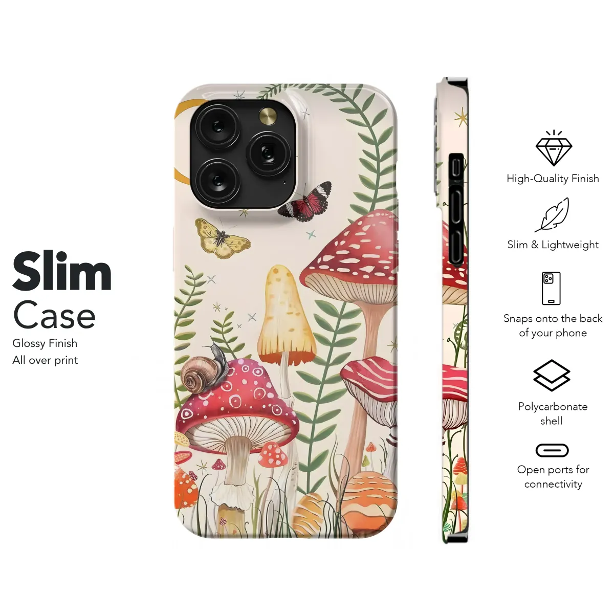 Wander into a secret moonlit glade every time you reach for your daily essential, and let this enchanting artwork transport you to a world of whimsical wonder. Under the soft glow of a golden crescent moon and twinkling stars, a vibrant community of forest life awakens. This beautiful botanical illustration captures the heart of cottagecore and fairycore dreams, featuring a stunning array of crimson-capped Amanita muscaria toadstools, delicate ferns, and magical woodland flora. Watch as jewel-toned butterflies flutter through the twilight air, and spot a tiny, curious snail making its journey across a polka-dotted mushroom cap. This isn't just a design; it's a portable escape, a slice of goblincore fantasy that brings a touch of cozy, earthy magic to your everyday life. Perfect for the nature lover and the daydreamer, this mystical fungi and celestial scene wraps your most-used accessory in a storybook charm. Carry this enchanting woodland gathering in your pocket and let its serene, witchy vibe be your little secret, a constant reminder of the magic hidden just beneath the forest floor. It's the perfect unique gift for her, or a beautiful way to treat yourself to a daily dose of enchantment.