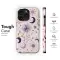 Embrace the magic of the cosmos with this enchanting celestial design. A whimsical pattern of suns, crescent moons, and twinkling stars dances across a soft blush background. Rendered in a dreamy palette of deep purple, soft lavender, and rich gold, this design captures the mystical allure of the night sky, adding a touch of boho elegance and cosmic wonder.