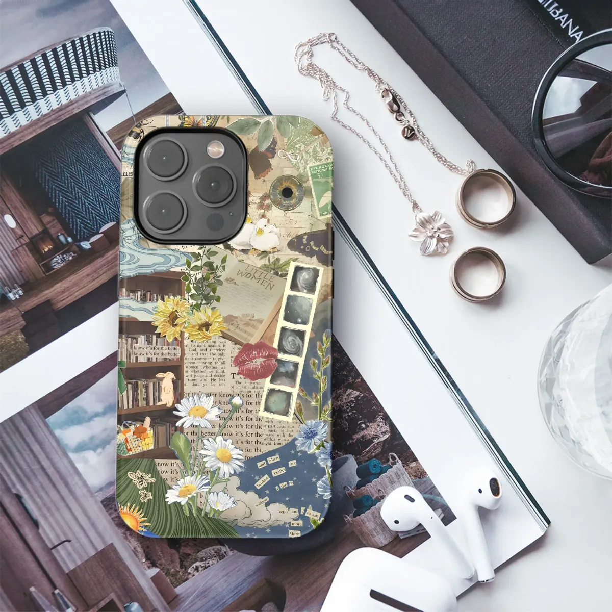 Dive into a dreamy escape with this whimsical collage phone case. Protect your iPhone, Samsung, or Pixel with vibrant art and unique style.