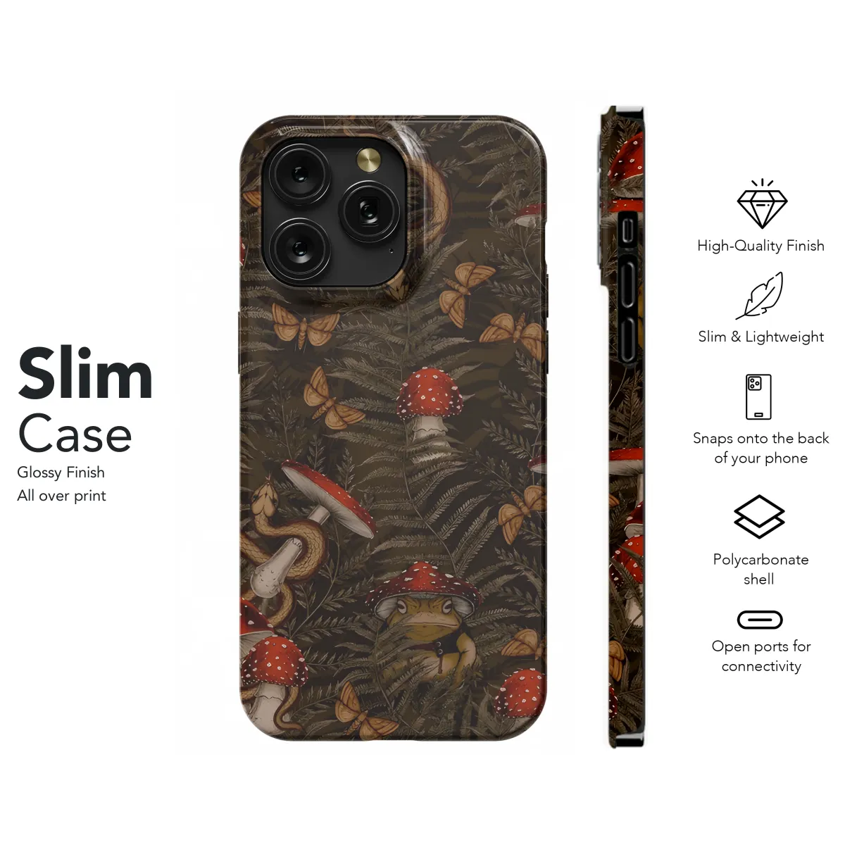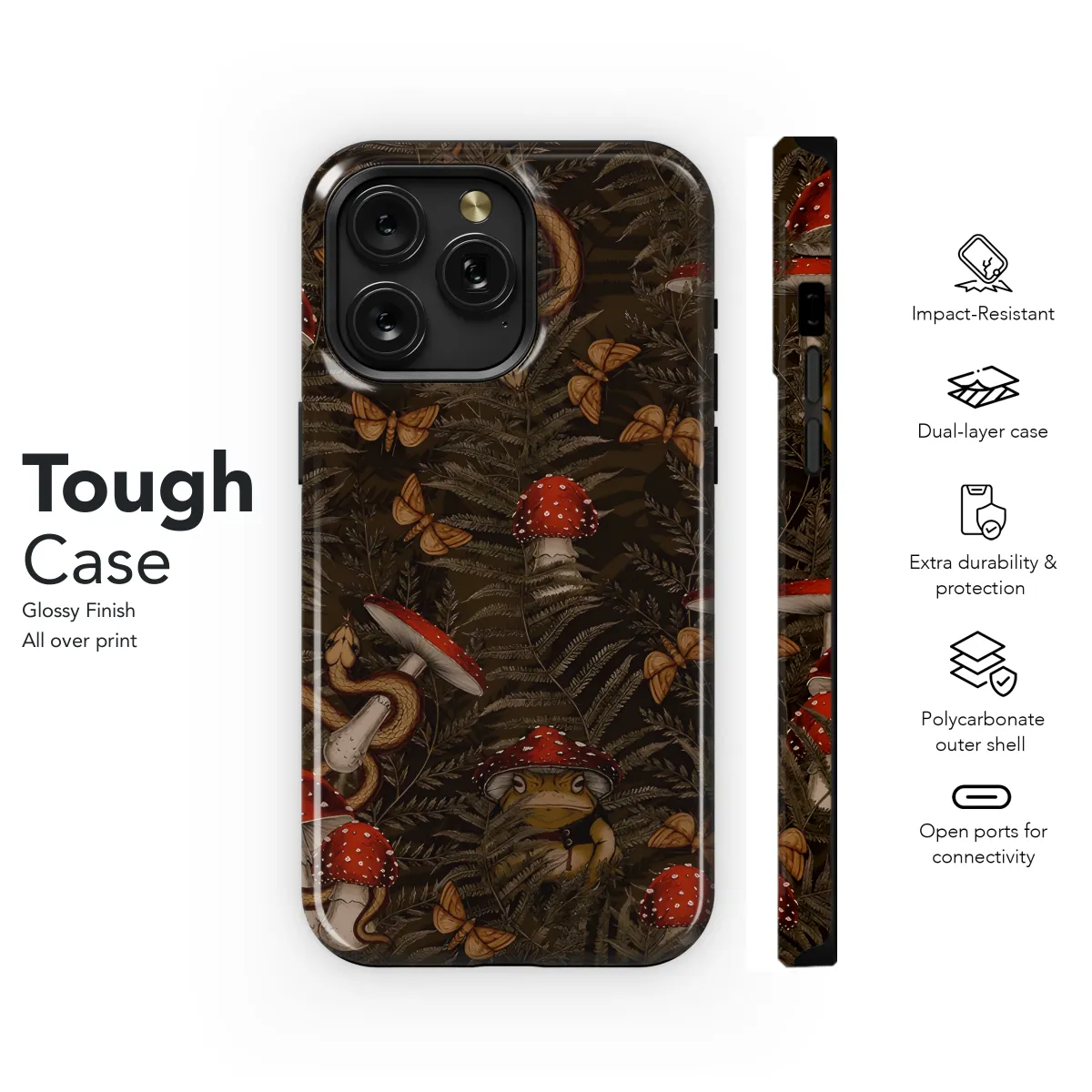 Step into a whimsical woodland realm with our enchanting Frog Toad Mushroom Phone Case! This delightful case transforms your phone into a quirky masterpiece, featuring a vibrant watercolor design of playful frogs, toadstools, and mushrooms that magically dance across its surface. Its sturdy construction ensures your precious device stays protected while immersing you in a whimsical wonderland.