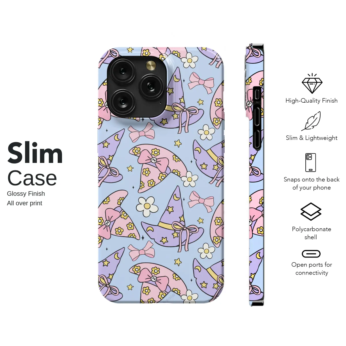 Step into a world of whimsical enchantment with this utterly charming design, a perfect little piece of everyday magic to carry with you. Imagine a dreamy sky of soft periwinkle blue, where a delightful pattern of pastel witch hats dance among twinkling stars and sweet, simple daisies. Each hat is a tiny work of art; some in a gentle lavender adorned with golden crescent moons and stars, others in a lovely blush pink scattered with cheerful little flowers and tied with a perfect, pretty bow. This isn't just a pattern; it's a feeling—a whisper of cozy magic and cottagecore daydreams. The soft, sweet color palette evokes a sense of playful nostalgia and serene joy, making it the ideal accessory for anyone who loves the kawaii aesthetic, pastel goth vibes, or simply wants to add a sprinkle of starlight to their daily routine. Protect your most essential companion in a style that is uniquely you, wrapping it in a durable, vibrant design that celebrates the magical, the cute, and the wonderfully witchy. Let this sweet celestial artwork guard your connection to the world, making every glance a reminder to seek out the sparkle in the everyday.