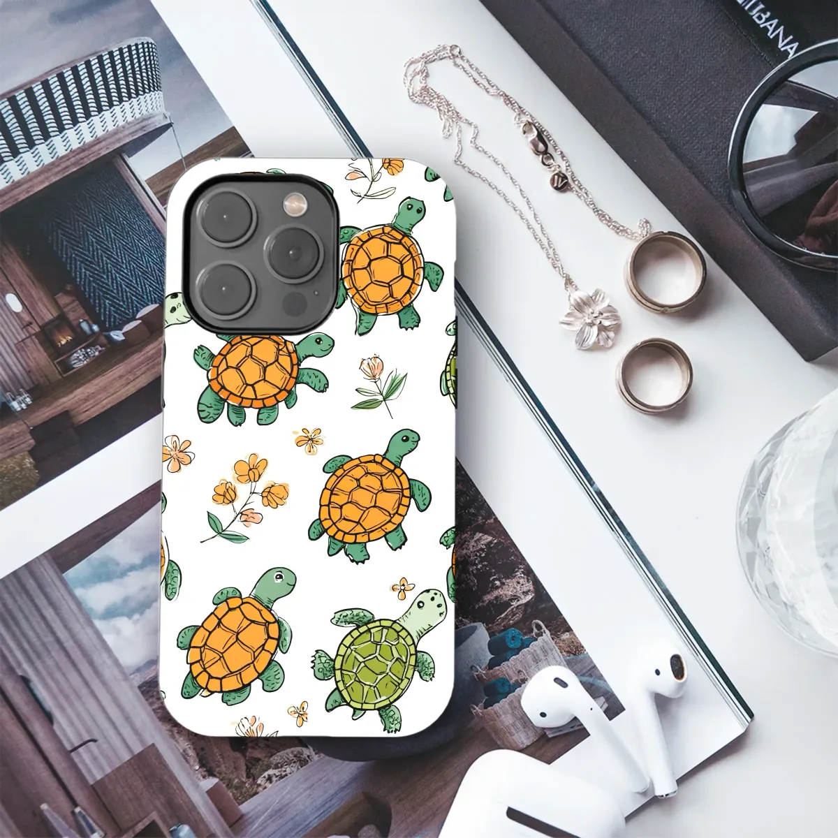 Embrace the gentle charm of the coast with this enchanting hand-drawn artwork, a design that captures the joyful spirit of nature in every delicate line. Imagine a serene parade of happy little turtles, their friendly faces and patterned shells glowing in warm shades of sun-kissed orange and earthy green. They swim peacefully through a scattered meadow of delicate, whimsical wildflowers, creating a beautiful dance between land and sea. This unique illustration blends a playful, sketchy style with a soothing, organic color palette set against a crisp white background, resulting in a pattern that feels both vibrant and incredibly calming. It evokes the feeling of a perfect, sun-drenched day, where time slows down to a gentle pace and simple beauty takes center stage. This nature-inspired piece is perfect for anyone who adores sea life, appreciates the trending cottagecore aesthetic, or simply wants to carry a small piece of pure happiness with them. Let this delightful turtle and floral pattern adorn your most-used accessory, adding a touch of unique personality and a constant reminder of the ocean's tranquil magic to your daily adventures. It’s an absolutely ideal and thoughtful gift for the animal lover or ocean dreamer in your life, bringing a splash of cheerful, artistic flair to their world.