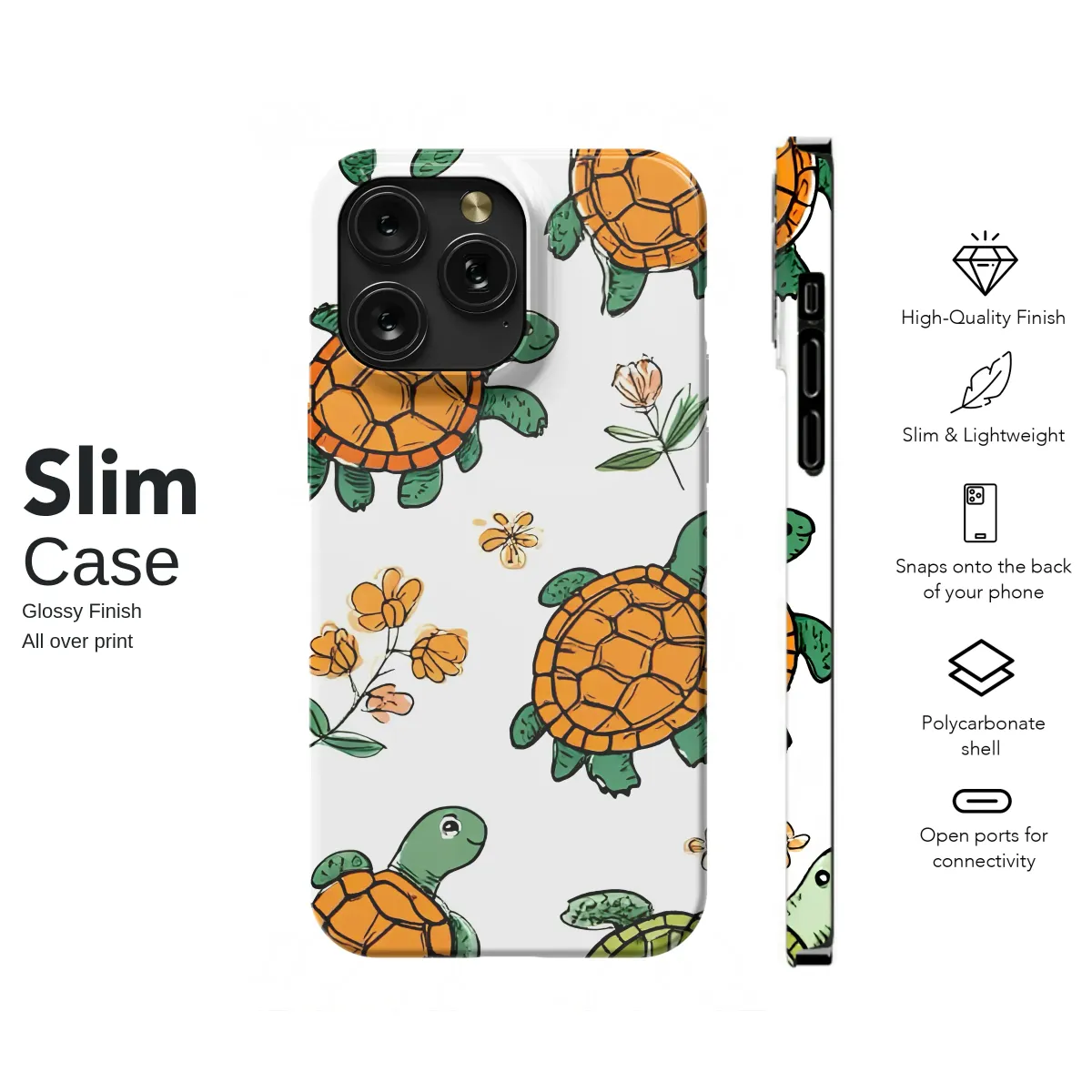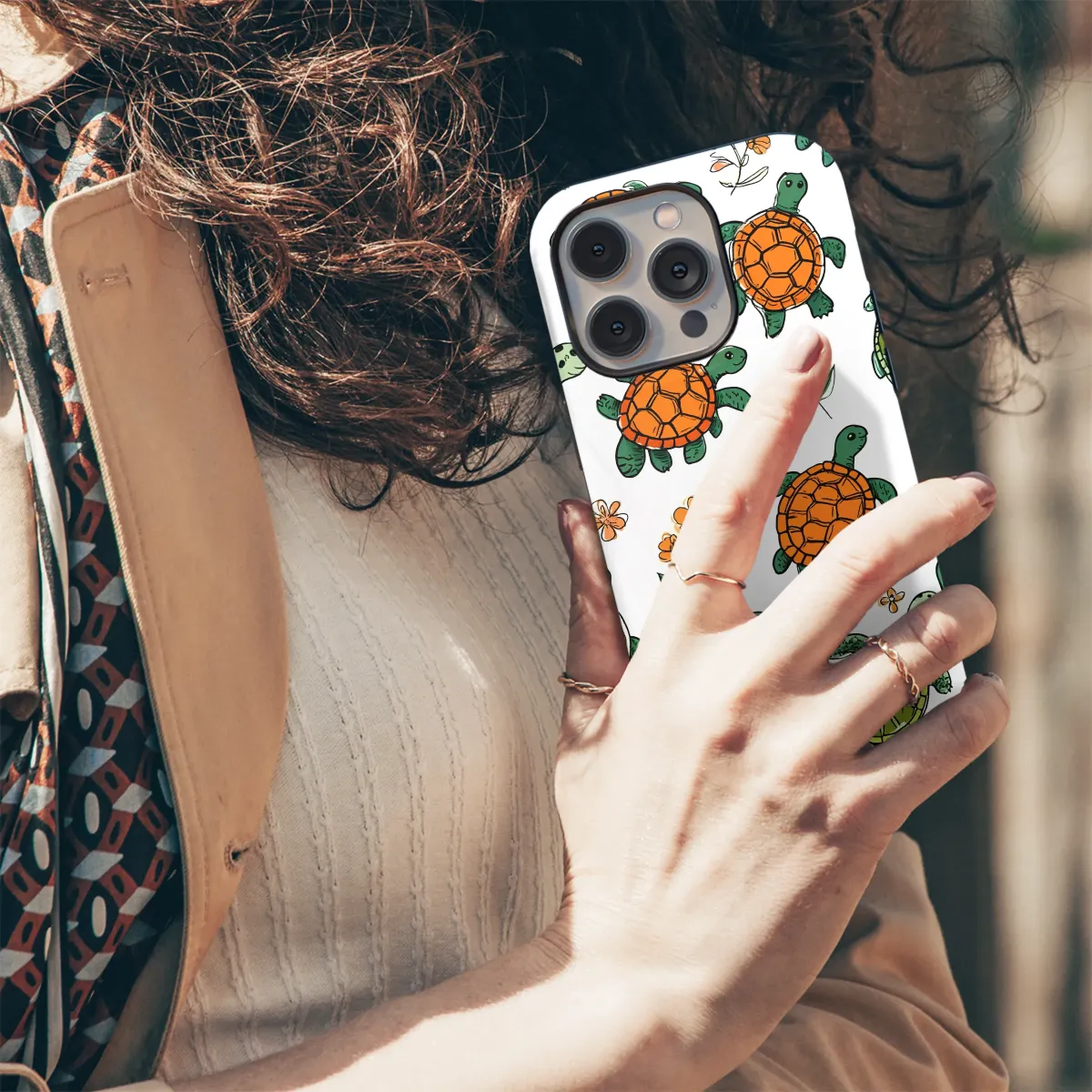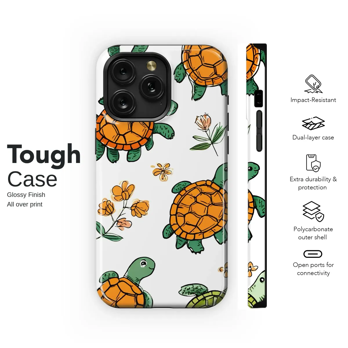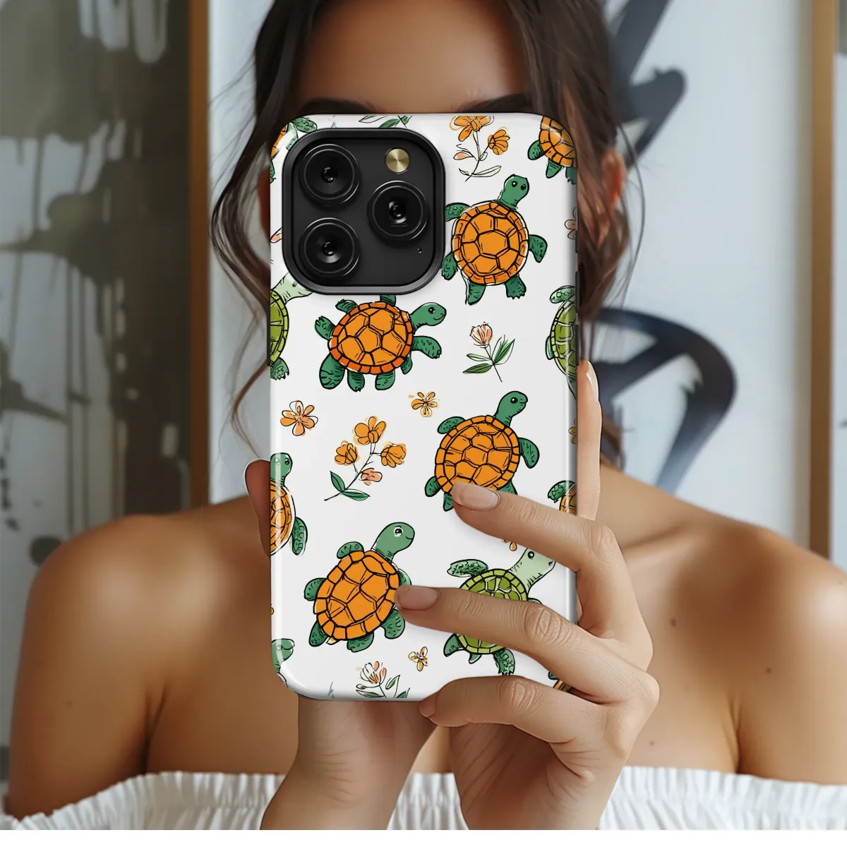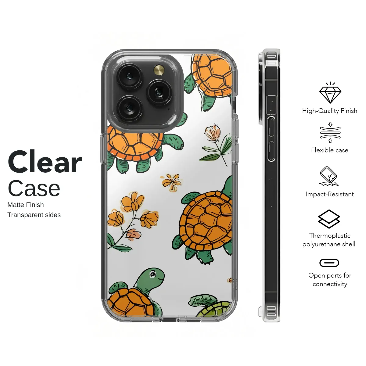 Embrace the gentle charm of the coast with this enchanting hand-drawn artwork, a design that captures the joyful spirit of nature in every delicate line. Imagine a serene parade of happy little turtles, their friendly faces and patterned shells glowing in warm shades of sun-kissed orange and earthy green. They swim peacefully through a scattered meadow of delicate, whimsical wildflowers, creating a beautiful dance between land and sea. This unique illustration blends a playful, sketchy style with a soothing, organic color palette set against a crisp white background, resulting in a pattern that feels both vibrant and incredibly calming. It evokes the feeling of a perfect, sun-drenched day, where time slows down to a gentle pace and simple beauty takes center stage. This nature-inspired piece is perfect for anyone who adores sea life, appreciates the trending cottagecore aesthetic, or simply wants to carry a small piece of pure happiness with them. Let this delightful turtle and floral pattern adorn your most-used accessory, adding a touch of unique personality and a constant reminder of the ocean's tranquil magic to your daily adventures. It’s an absolutely ideal and thoughtful gift for the animal lover or ocean dreamer in your life, bringing a splash of cheerful, artistic flair to their world.