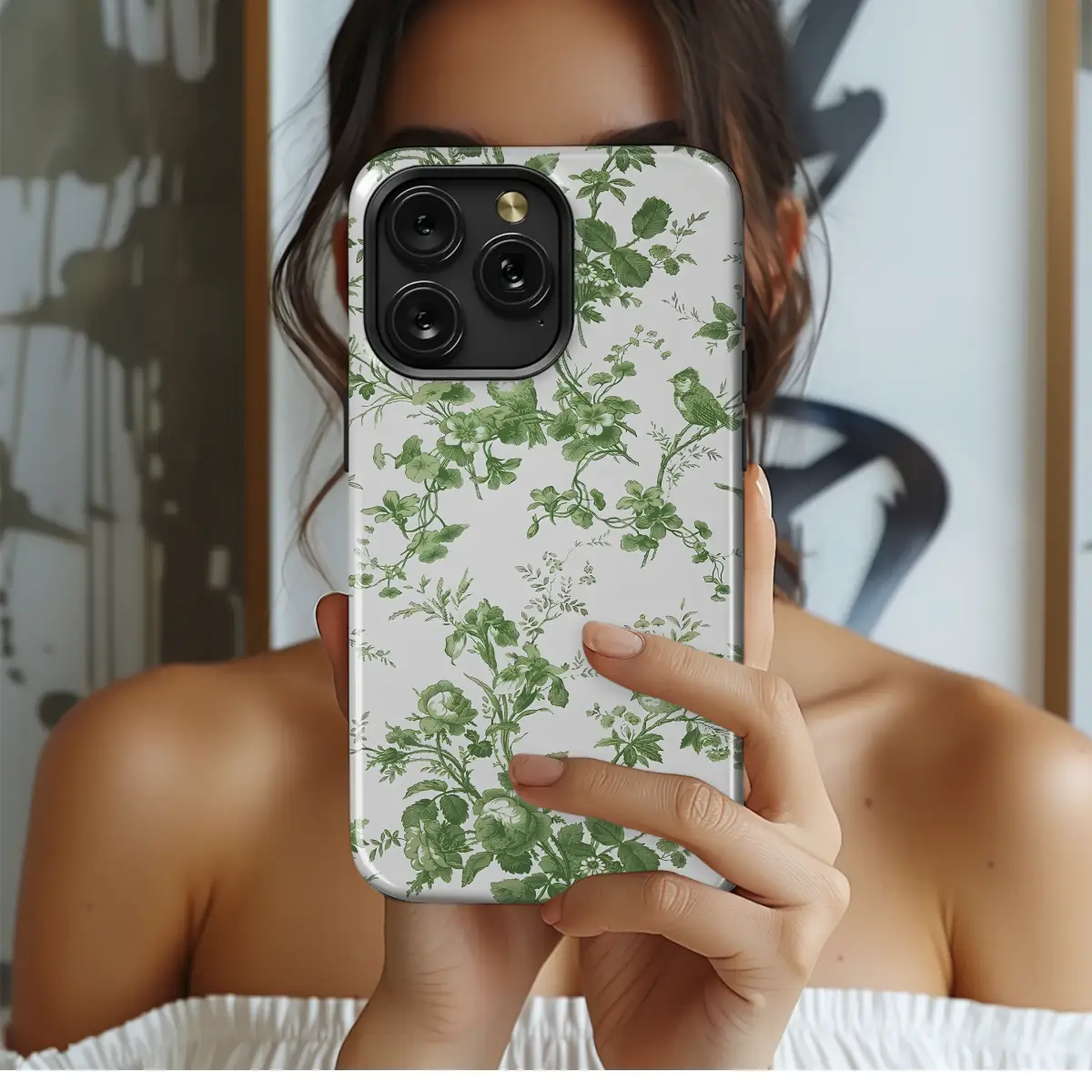 Wander through a secret, sun-dappled garden every time you reach for your daily essential. This enchanting design captures the timeless elegance of classic toile de Jouy, bringing a touch of pastoral romance and sophisticated charm to your modern life. Rendered in a beautiful monochromatic palette of verdant, earthy green on a soft cream background, intricate vines, lush cabbage roses, and delicate wildflowers weave a delicate natural tapestry. Perched gracefully among the leaves, charming songbirds seem to share whispered secrets of a bygone era, adding a lively and whimsical spirit to the serene botanical scene. The detailed, vintage-inspired linework evokes the feeling of a treasured heirloom print, a piece of art that tells a story of tranquil country estates and leisurely afternoons spent in nature's embrace. It's a perfect nod to the beloved cottagecore aesthetic, blending seamlessly with a love for all things vintage and botanical. Let this verdant garden scene be a small, beautiful escape, a reminder of nature’s quiet poetry that you can carry with you, transforming an everyday object into an accessory of refined, natural elegance.
