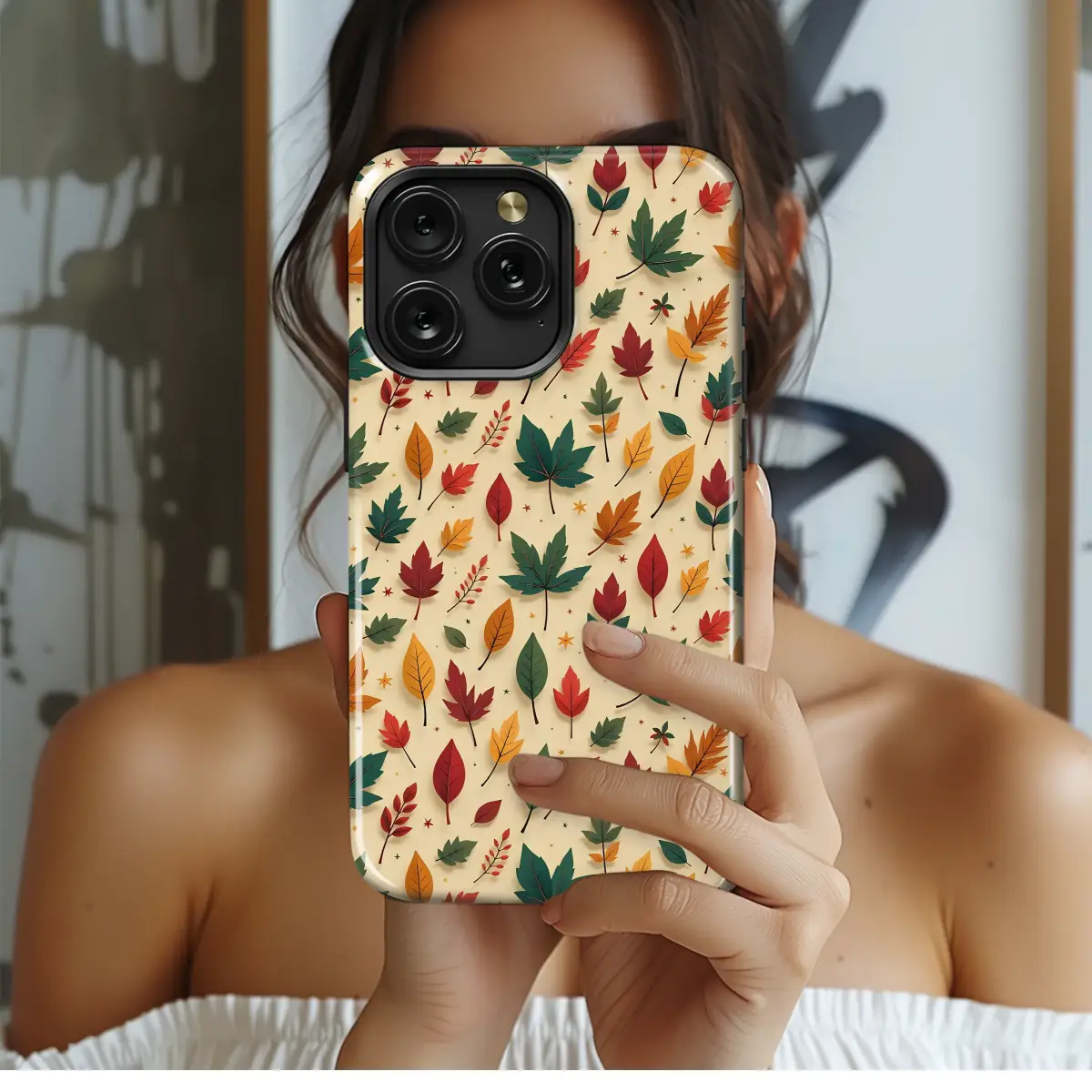 Embrace the cozy magic of the season and carry a piece of autumnal wonder with you everywhere you go. This whimsical woodland design captures the heartwarming feeling of a crisp, sunny fall day, featuring a delightful cascade of falling leaves that seem to dance across a soft, creamy backdrop. Imagine a forest floor transformed into a vibrant tapestry of deep crimson, warm marigold, burnt orange, and rich emerald green, all scattered artfully with a paper-craft charm. Tiny, twinkling stars are sprinkled throughout, adding a touch of enchantment to this charming nature-inspired pattern, evoking the scent of spiced cider and the comfort of a favorite sweater. Perfect for the cottagecore enthusiast or anyone who adores the fall aesthetic, this durable and stylish accessory transforms your most essential daily companion into a pocket-sized piece of art. Let this beautiful botanical shield be your constant reminder of harvest blessings and the simple, cozy joys of autumn, protecting your tech with a touch of seasonal charm that’s perfect as a thoughtful gift for her or a sweet treat for yourself.