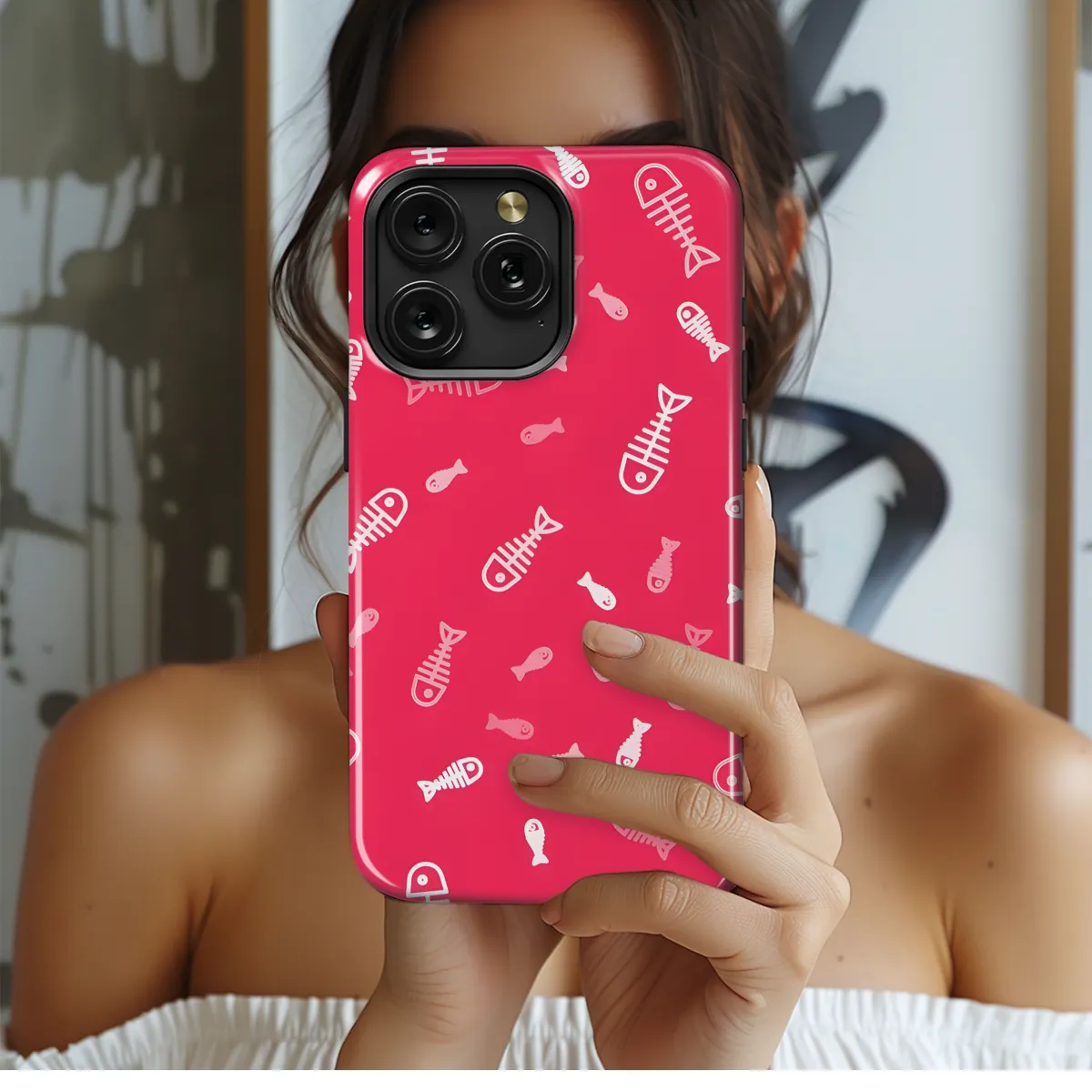 Protect your phone in style with our White Fish Skeleton Pattern Phone Case. This durable case features a unique and eye-catching fish skeleton design, making your phone stand out from the crowd. Made from high-quality materials, it provides excellent protection against scratches, bumps, and drops. Available for a wide range of iPhone, Samsung, and Pixel models, it's the perfect way to safeguard your device while adding a touch of personality.