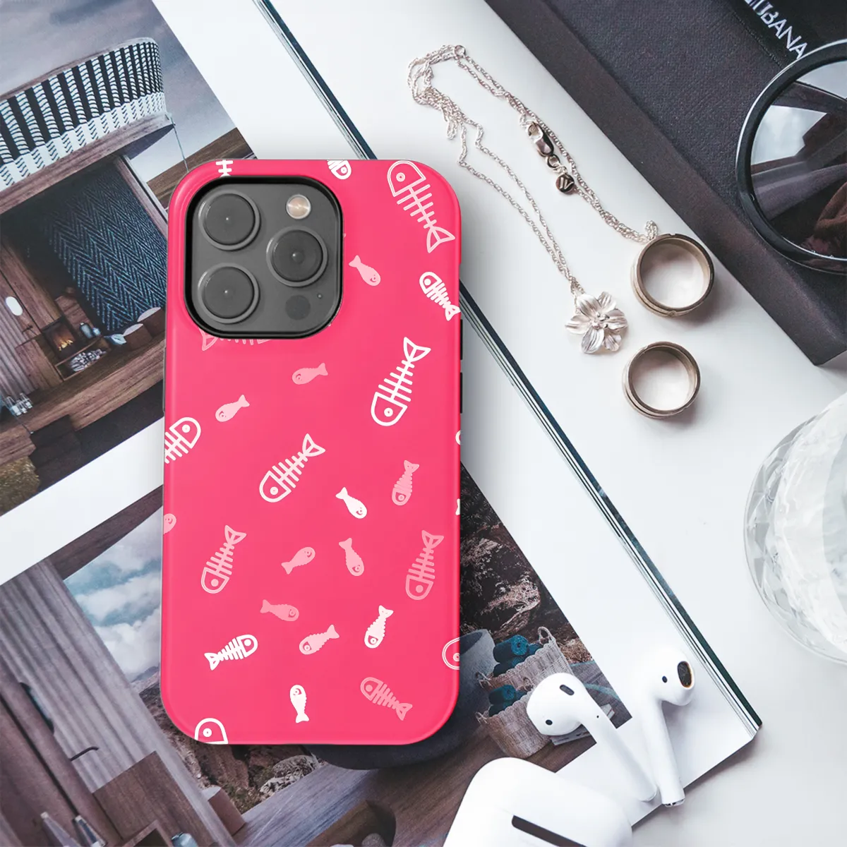 Protect your phone in style with our White Fish Skeleton Pattern Phone Case. This durable case features a unique and eye-catching fish skeleton design, making your phone stand out from the crowd. Made from high-quality materials, it provides excellent protection against scratches, bumps, and drops. Available for a wide range of iPhone, Samsung, and Pixel models, it's the perfect way to safeguard your device while adding a touch of personality.
