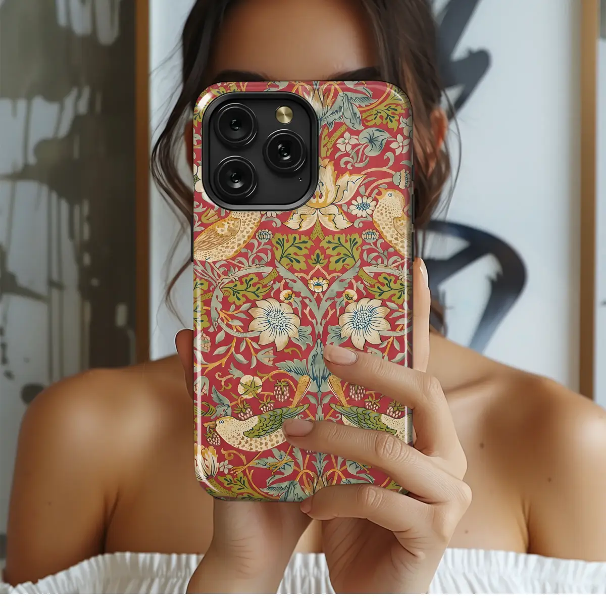 Adorn your device with this exquisite William Morris-inspired design, featuring a vibrant tapestry of birds and flourishing botanicals. The rich, jewel-toned palette of reds, greens, and golds creates a luxurious and timeless aesthetic. This intricate artwork, reminiscent of classic art nouveau, brings a touch of elegance and sophistication to your everyday life. The detailed floral patterns and graceful birds are beautifully rendered, transforming your device into a portable work of art. Perfect for those who appreciate handcrafted designs and vintage-inspired aesthetics, this captivating print is a stunning conversation starter. Its high-quality printing ensures vibrant colors and sharp details that will last. This unique and stylish accessory reflects individuality and a passion for beautiful craftsmanship, making it an ideal gift for yourself or a loved one with refined taste. Embrace the beauty of nature and the artistry of the past with this remarkable design. Protect your device in style and make a statement with this artistic masterpiece.