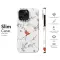 Embrace the beauty of the winter season with this elegant design. The pattern features vibrant red cardinals in flight, intricately detailed and scattered among festive elements. Sprigs of red berries, delicate pine branches, pine cones, and subtle white poinsettia flowers create a classic, nature-inspired holiday motif on a clean white background.
