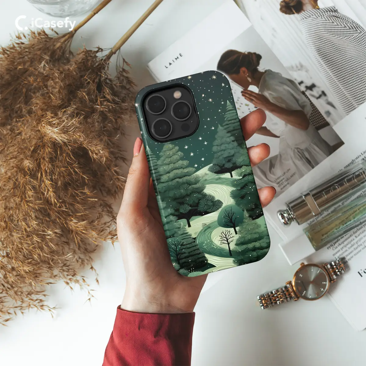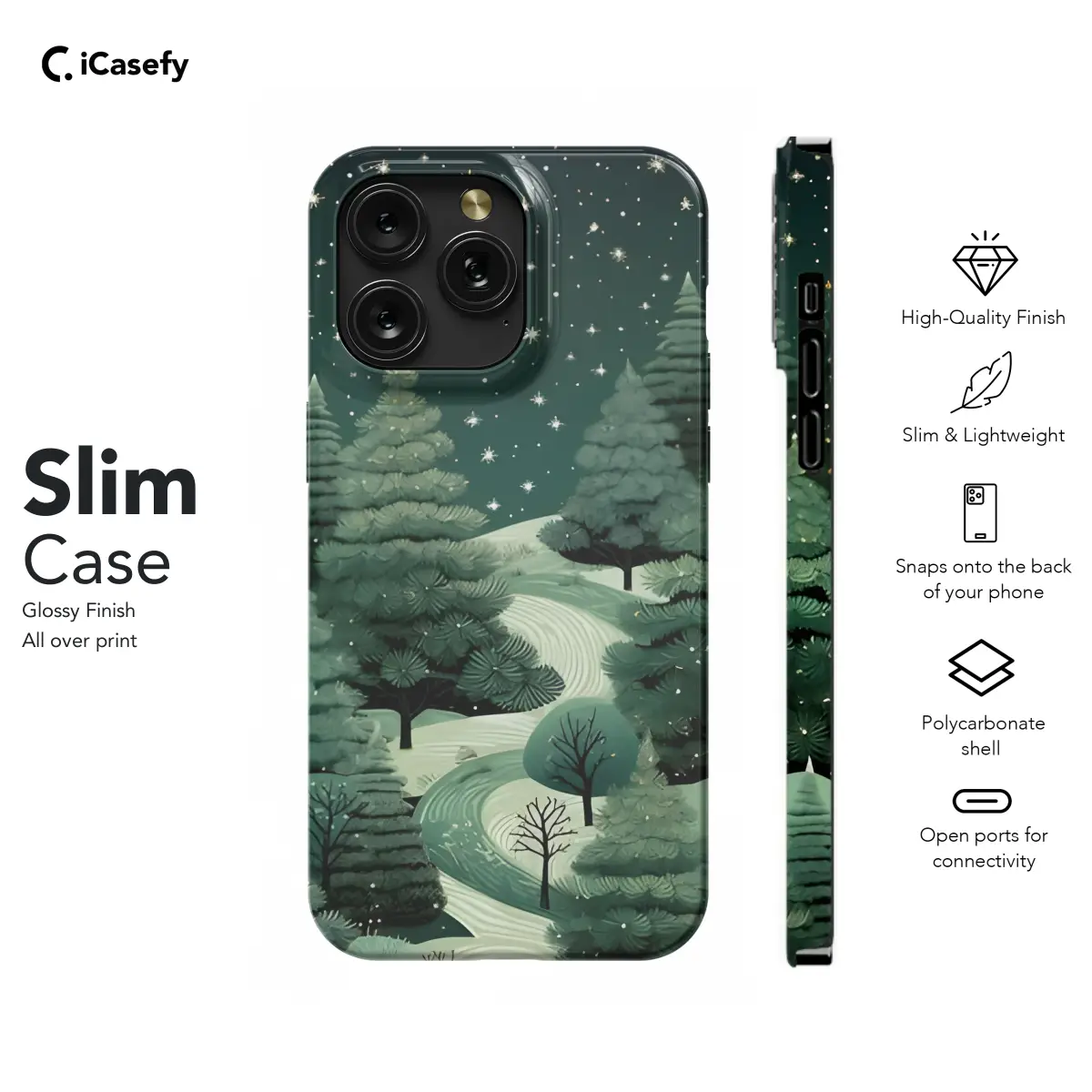 Immerse yourself in the enchanting beauty of winter with our Celestial Snowing Sky Phone Case. Adorned with a captivating snow-laden sky amidst towering green trees, this case transports you to a tranquil winter wonderland. Its sturdy construction provides reliable protection for your precious device, ensuring its safety from drops and scratches. Snuggle up with the soothing hues of nature and embrace the spirit of the season wherever you go.