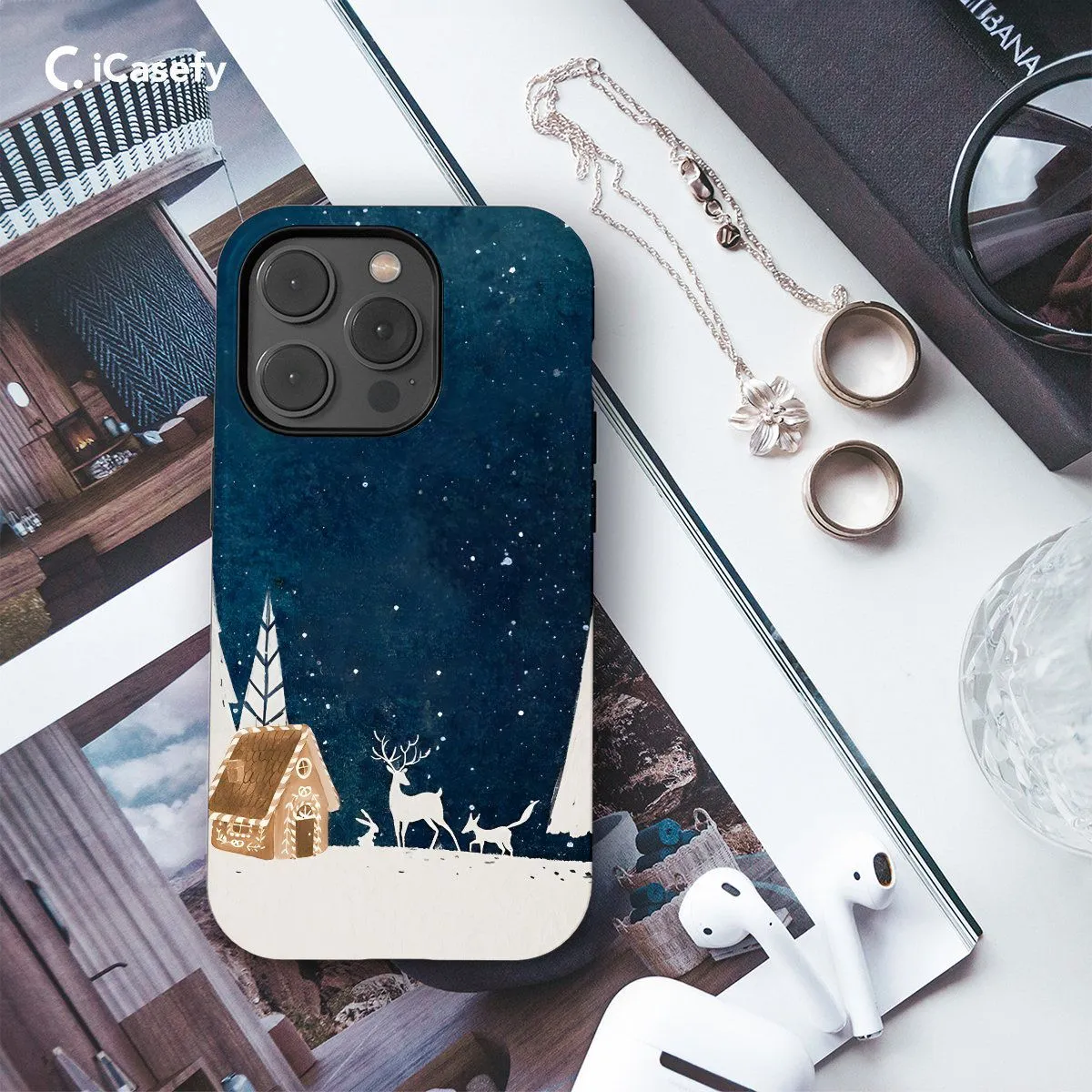 Embrace the enchantment of the winter season with this captivating phone case featuring a celestial Christmas design adorned with reindeer. Inspired by the magic of the holidays and the serene beauty of the night sky, this case captures the spirit of winter wonder. Carry a touch of festive charm with you wherever you go and let your device become a beacon of holiday cheer with this enchanting accessory.