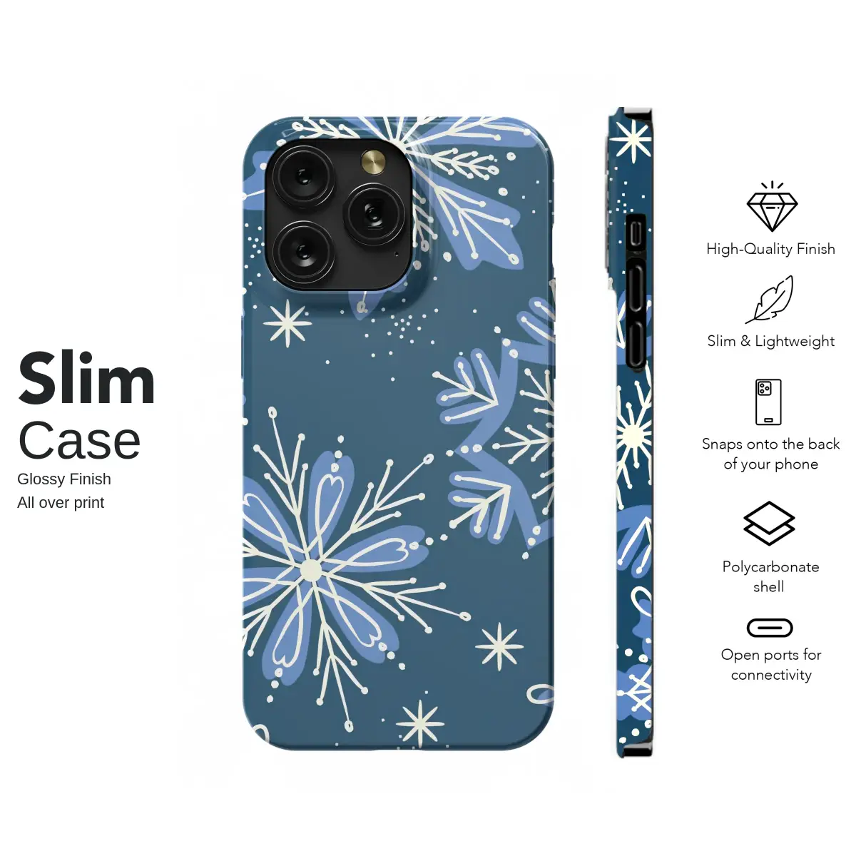 Embrace the cozy season with this winter snowflake pattern phone case. Featuring a charming hand-drawn design of intricate white and blue snowflakes against a deep navy background, this case is perfect for adding a festive touch to your device. Inspired by the quiet beauty of a snowy evening, this design brings a touch of winter magic to your everyday tech. It's a subtle yet stylish way to celebrate the holidays and the winter months. Key Features: • Materials: Durable polycarbonate shell with a soft TPU rubber liner for impact absorption. • Protection: Raised bezel design protects the screen and camera from scratches. • Finish: Available in a matte or gloss finish to suit your style. • Compatibility: Fits most modern iPhone, Samsung Galaxy, and Google Pixel models. • Printing: The design is UV printed for a vibrant, long-lasting, and fade-resistant finish. To clean, simply wipe with a soft, damp cloth. Avoid harsh chemicals to preserve the print quality.