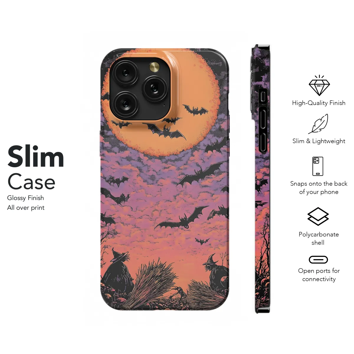 Embrace the ethereal enchantment of the moonlit night with our Witchy Moon Bats Phone Case! This mystical accessory transforms your device into a canvas of cosmic wonder, featuring an enchanting moon and whimsical bats that flutter through a star-speckled sky. Protect your phone in style while channeling the enigmatic allure of the witching hour.