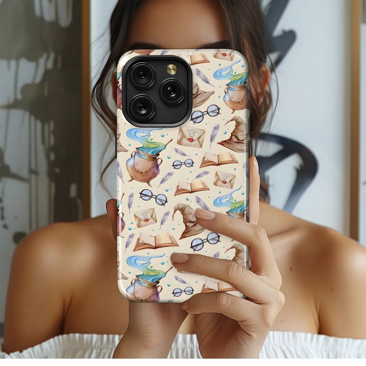 Embrace enchantment with this magical design, featuring whimsical cauldrons bubbling with vibrant potions, pointy witch hats, ancient spell books, and mysterious letters sealed with wax. This enchanting pattern is perfect for adding a touch of fantasy to your everyday life. The charming watercolor style gives it a handcrafted feel, making each piece unique. Express your inner wizard or witch with this delightful accessory. The intricate details and soft color palette create a captivating design that whispers tales of magic and wonder. Let this design be a portal to a world of spells and secrets, transforming your personal item into a mystical keepsake. This captivating print is sure to turn heads and spark conversations wherever you go. It's the perfect blend of whimsical artistry and everyday practicality, making it a truly enchanting choice. Order yours today and let the magic begin!