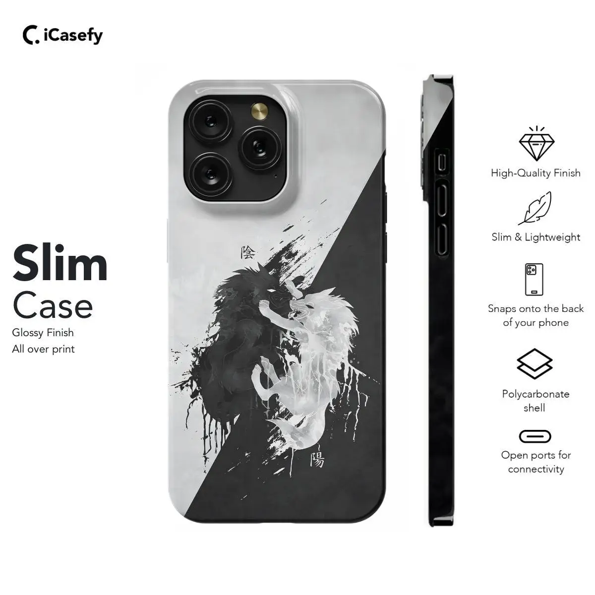 Find harmony and style with our Black and White Japanese Wolf Yin Yang Phone Case. Featuring a captivating portrayal of a wolf in the traditional Yin and Yang motif, this case embodies balance and elegance. Crafted for both protection and aesthetics, it shields your phone while showcasing your appreciation for Japanese symbolism. With precise cutouts for ports and buttons, it ensures seamless functionality. Embrace the duality of life and elevate your phone's look with our Yin Yang Phone Case today!
