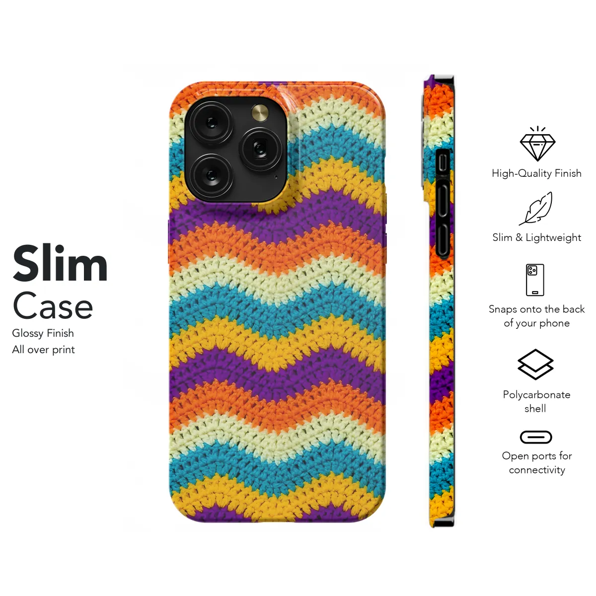 Accessorize your phone with this uniquely designed crochet phone case. Its zigzag pattern adds a touch of elegance and style, while providing protection for your device. Available in a variety of colors, this case is compatible with iPhone, Samsung, and Pixel 3/5/0.