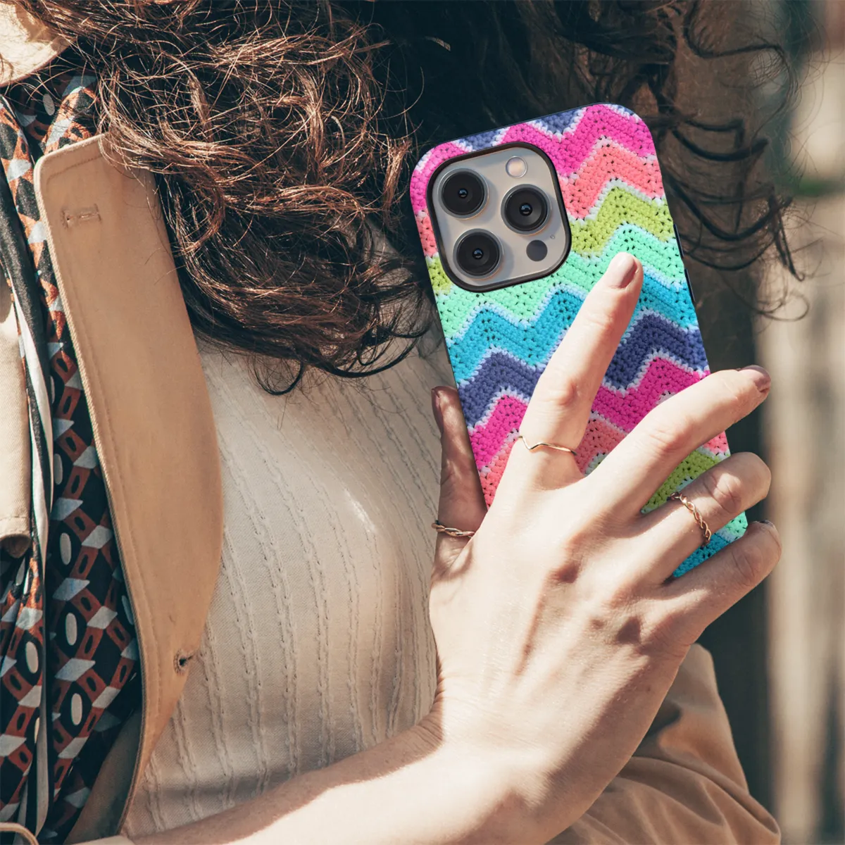 Introducing our captivating Zigzag Crochet Phone Case, a masterpiece that combines bohemian charm with impeccable protection. Handcrafted with intricate crocheted details, each case exudes a unique and sophisticated style that complements any outfit. Crafted from the finest materials, our phone cases provide a secure and snug fit for your precious smartphone. The zigzag crochet pattern adds a layer of tactile interest, offering a delightful grip that enhances your phone experience. Whether you're a fashion-forward trendsetter or simply appreciate the beauty of handmade craftsmanship, our Zigzag Crochet Phone Case is the perfect fusion of style and functionality. Elevate your phone's aesthetic while shielding it from bumps and scratches. Order now and embrace the enchanting allure of crochet!