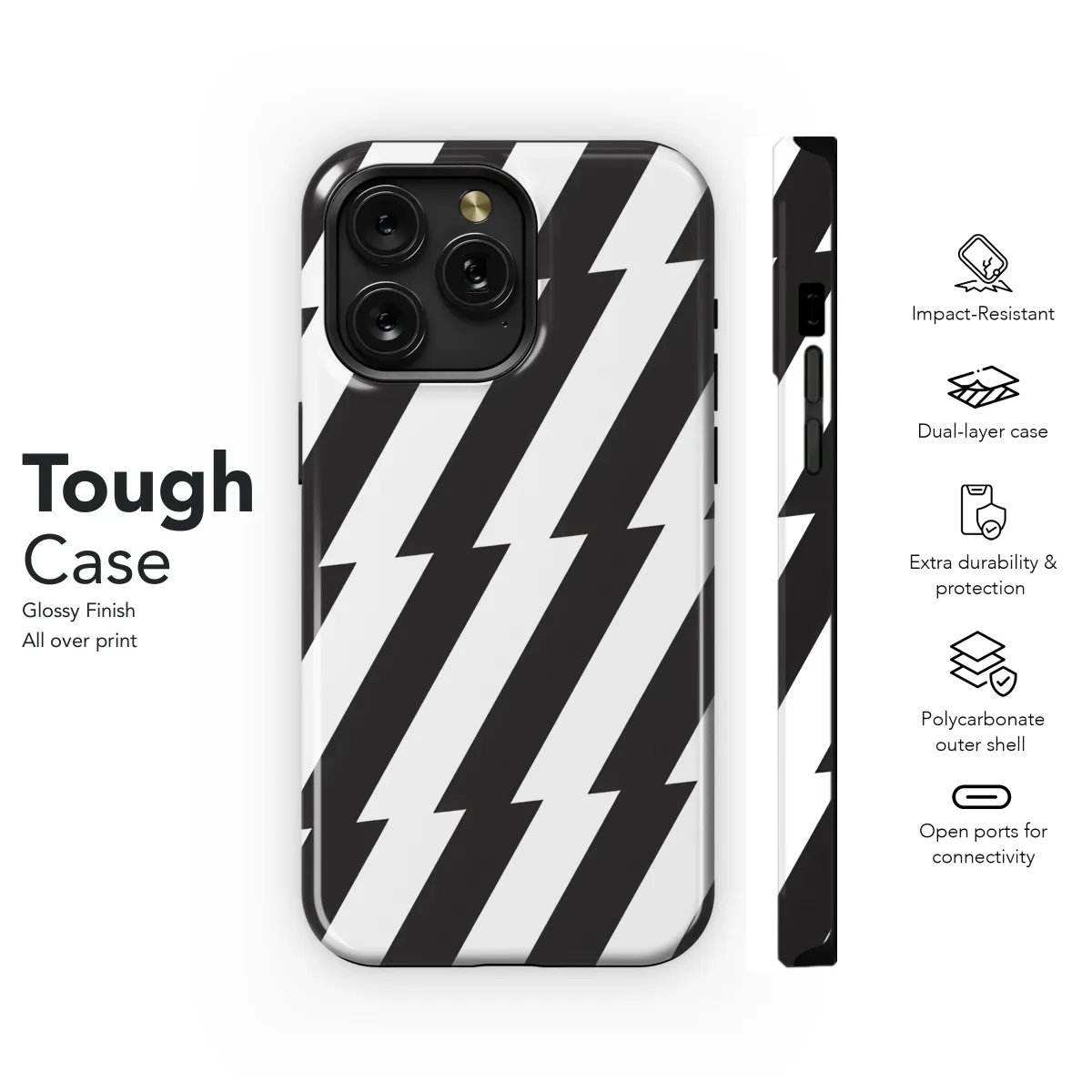 Introducing the Zigzag Lines Phone Case, a stylish and protective cover for your iPhone, Samsung, or Pixel smartphone. The case features a unique zigzag line design that adds a touch of flair to your device, while the durable material ensures that your phone is protected from scratches, bumps, and drops. The case also features a raised lip around the screen to protect it from damage when placed face down.